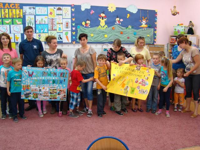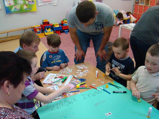 Na koniec zajęć rodzice wspólnie ze swymi pociechami wykonali plakaty promujące zdrowy styl życia. Okazało się, że nie tylko nasze dzieci mają ogromny talent plastyczny, ale również ich rodzice, którzy z zapałem przystąpili do pracy. Efekty okazały się imponujące. Taka forma spotkania z rodzicami i wspólnie spędzonego czasu sprawiła wiele radości i satysfakcji nie tylko przedszkolakom, ale też i ich najbliższym.