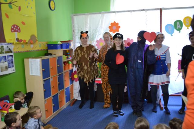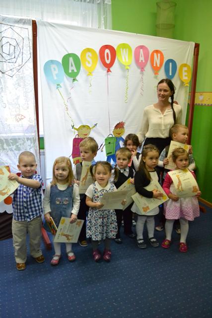 29 października tego roku w naszym przedszkolu odbyła się uroczystość „Pasowania na przedszkolaka”. Był to pierwszy tak ważny debiut przedszkolaków z najmłodszej grupy. Dzieci podeszły do tego z entuzjazmem, przez wiele dni pilnie uczyły się do wystąpienia przed rodzicami. Cierpliwie znosiły próby części artystycznej. Był to dla nich miły wysiłek, z jednej strony trwał ciągle okres adaptacyjny związany z przyjściem do przedszkola, a z drugiej strony skupiały się na nauce, na próbach. Uporały się z tym ciężarem najlepiej jak tylko potrafiły, czego efekt Rodzice mogli podziwiać właśnie 29 października. Rodzice również przygotowali dla maluszków małą niespodziankę - wcielili się w rolę aktorów i występowali na scenie przedstawiając wiersz „Mucha i karaluch”.