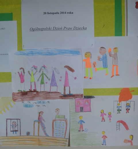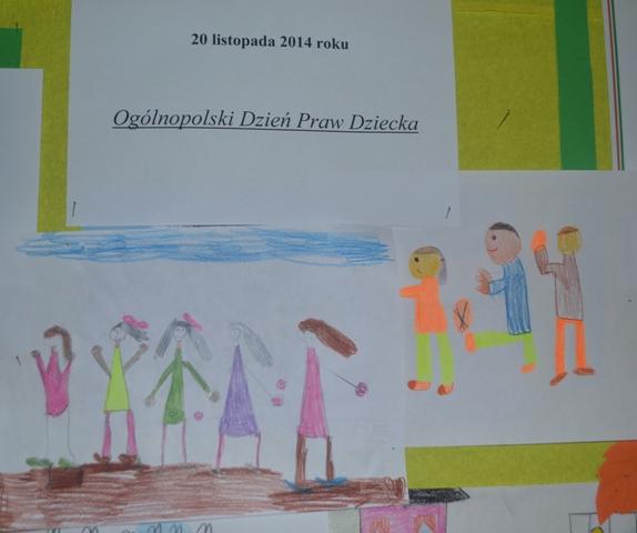 W związku z obchodami Międzynarodowego Dnia Praw Dziecka nasi uczniowie wykonali prace plastyczne które zdobią szkolną gazetkę.