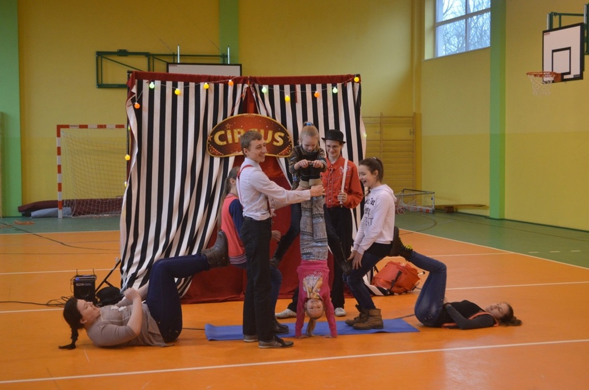 Dzieci również mogły uczestniczyć w tym pełnym emocji widowisku – spróbowały swoich sił w żonglowaniu i elementach akrobatyki. A to wszystko po to, żeby przy okazji dobrej zabawy pokazać dzieciom, jak ważna jest współpraca i zaufanie do drugiej osoby.