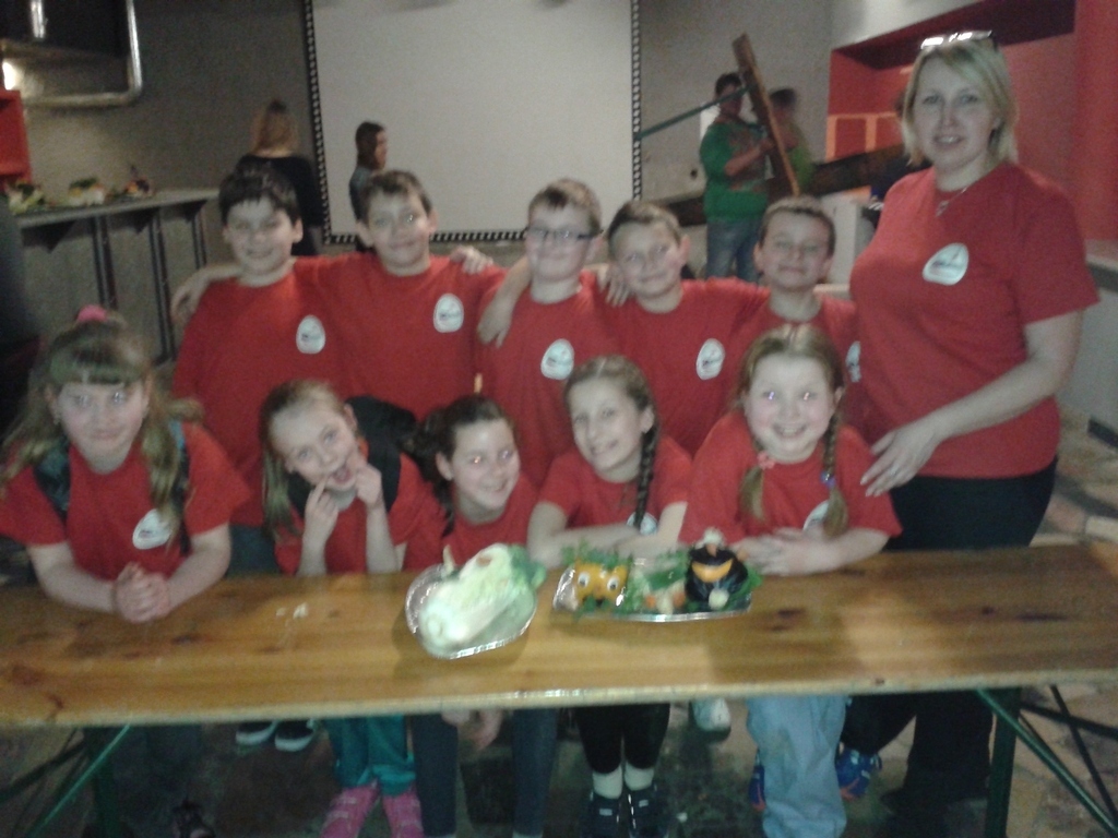 W festiwalu wzięły udział 22 zespoły w wieku od 6 do 10 lat. Program składał się z części festiwalowej, części konkursowej – niespodzianki, poczęstunku, rozdania nagród i oczywiście dobrej zabawy. W tym roku wśród uczestników znalazła się również 10 osobowa grupa uczniów kl. III z naszego Zespołu pod nazwą ŻUCZKI.Wszystkie zespoły zostały nagrodzone za wykonanie okrzyku i piosenki, oczywiście tematycznie związanych z festiwalem. Natomiast dodatkowo nasze ŻUCZKI w konkursie plastycznym pt. „Wesołe buźki i minki z warzyw” zdobyły III miejsce, za co również dostały nagrodę. Pełni entuzjazmu i witaminkowej energii wrócili nasi zwycięzcy do szkoły podwójnie zadowoleni!