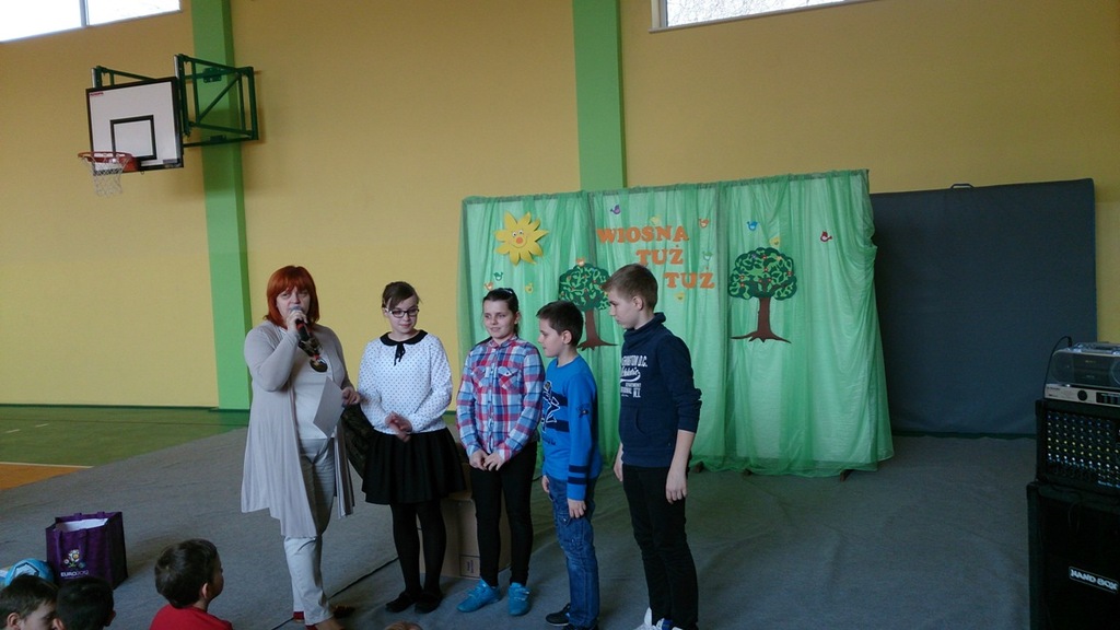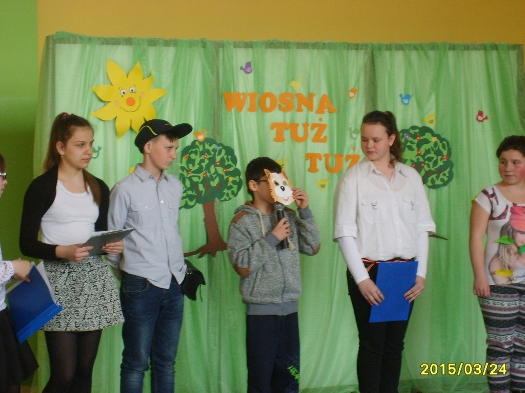 24 marca 2015 roku, odbyło się w naszej szkole przedstawienie z okazji powitania wiosny, a pożegniania zimy przygotowane przez uczniów klasy V, na które zostali zaproszeni wszyscy uczniowie i nauczyciele. Przy okazji apelu zostały rozstrzygnięte konkursy szkolne m.in.