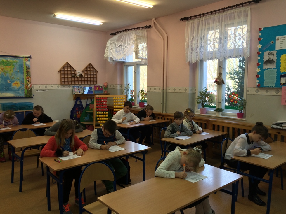 z różnymi zadaniami, które wymagały znajomości zasad ortografii. Wśród zadań było też dyktando o tematyce wiosennej. Na wykonanie wszystkich poleceń uczniowie mieli 60 minut. Na podstawie wykonanych kart pracy zostali wyłonienie najlepsi uczniowie w dziedzinie ortografii w dwóch kategoriach: klas II i klas III.
