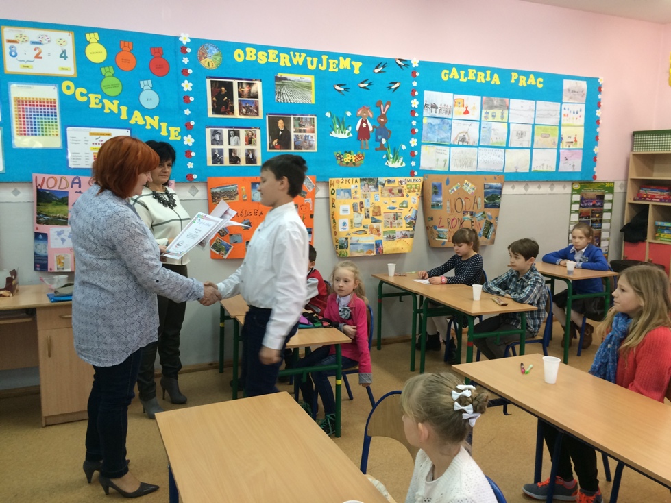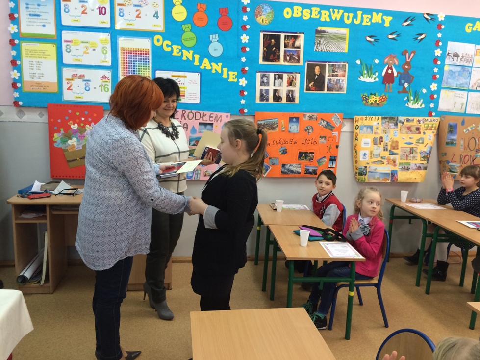 i długopisy oraz byli poczęstowani wafelkami – Grześkami i soczkami. Laureaci zaś zostali nagrodzeni dyplomami Mistrzów i słownikami ortograficznymi.