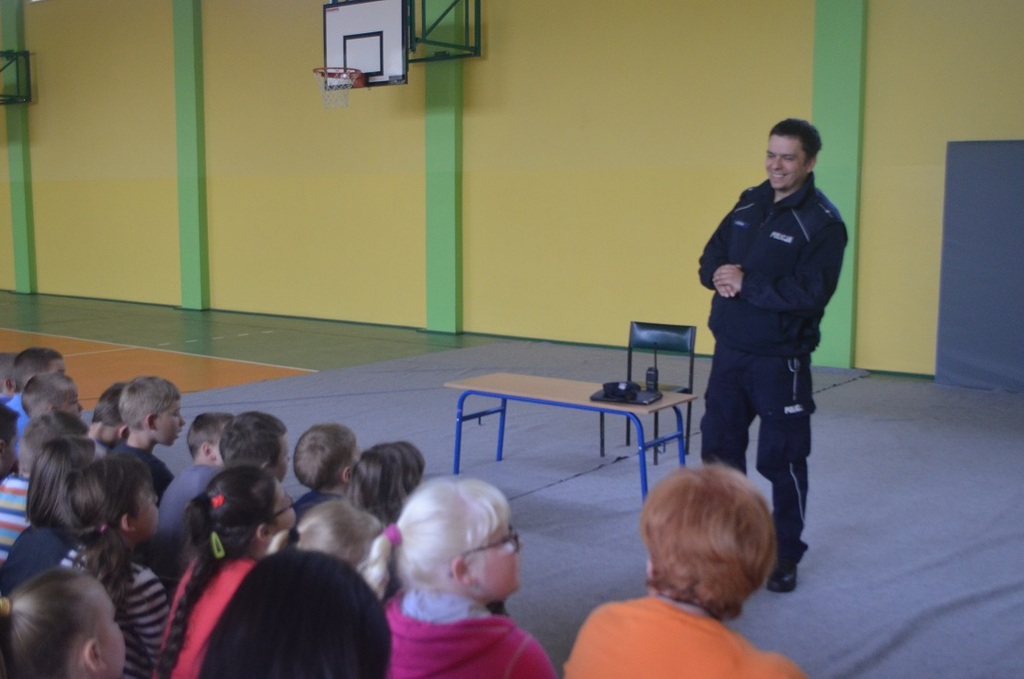 W dniu 8 maja odbyło się spotkanie z naszym dzielnicowym z posterunku policji w Koźminie Wlkp. - mł asp. Michałem Ciszakiem, który opowiedział dzieciom o zachowaniu bezpieczeństwa w drodze do i ze szkoły, o bezpiecznym przechodzeniu przez ulicę, prawidłowym zachowaniu się podczas jazdy rowerem, jazdy na rolkach.