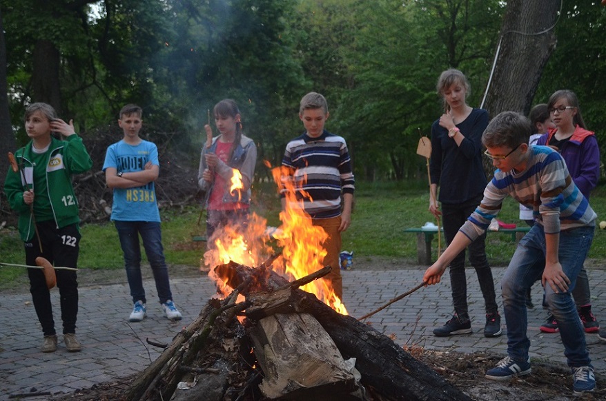 Z piątku na sobotę w dniach 8-9 maja br. odbyło się integracyjne spotkanie pod hasłem: PIŻAMA PARTY. W imprezie brało udział 20 uczniów z klasy V i VI oraz dwóch opiekunów. Spotkaniu towarzyszyła idealna pogoda, zatem imprezę rozpoczęto zabawą w terenie czyli podchodami. Podczas zabawy dzieci wykazały się kreatywnością i umiejętnością dobrej organizacji. Kolejną atrakcją jaka czekała na dzieci było ognisko trwające do zmroku. Po ognisku wciąż pełna energii młodzież wróciła do szkoły by tam kontynuować zabawę. Powodzeniem cieszyły się zawody w piłkę ręczną. Prócz rywalizacji, grze towarzyszył dobry nastrój zawodników. Uśmiech nie znikał z twarzy dzieci. Po turniejach na sali gimnastycznej wciąż niezmęczeni uczniowie, ale zbyt późna na wojaże godzina zadecydowała by położyć się spać. Uczniowie wciąż jednak głodni wrażeń postanowili, że idealnym do poduszki może okazać się seans filmowy. Po obejrzeniu 2 komedii ogłoszono ciszę nocną. W konsekwencji jednak uczniowie nie spali przez całą noc. W ciszy i mroku można było usłyszeć rozmowy do rana. O godzinie 6.00 panie opiekunki zaproponowały dzieciom poranny jogging, co jak się okazało sprawiło im dużo frajdy. Nad ranem również, dzieci zjadły śniadanie, a podsumowaniem była „społeczność” na której uczniowie oceniali spotkanie plusami i minusami. Dzieci oceniły imprezę plusami i jak powiedziały „chcą jeszcze”. O godzinie 10.00 rodzice odebrali swoje pociechy całe, zdrowe i zadowolone.