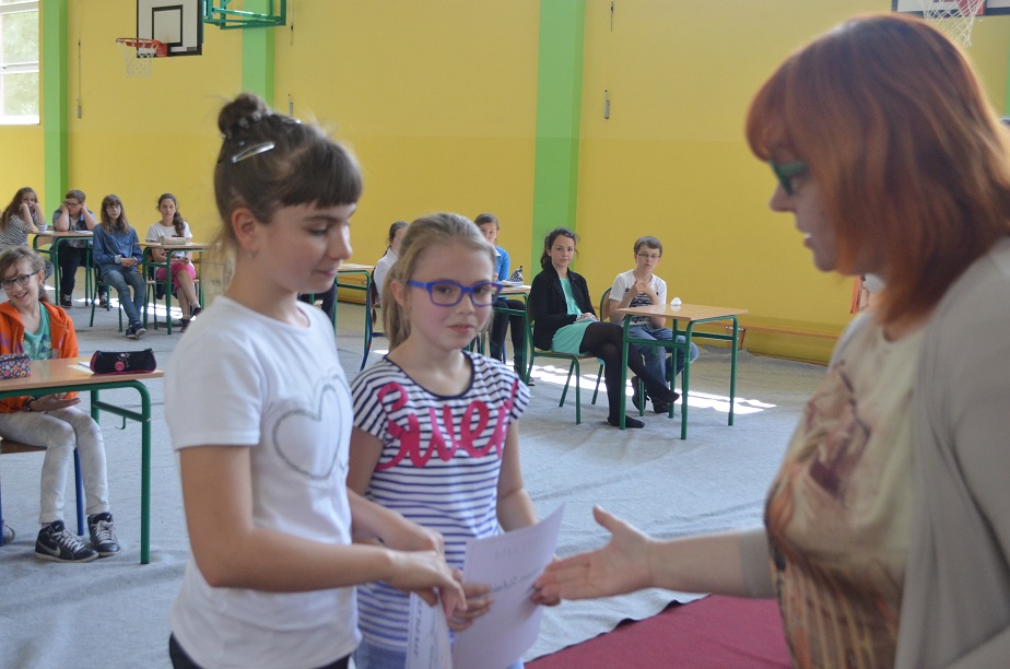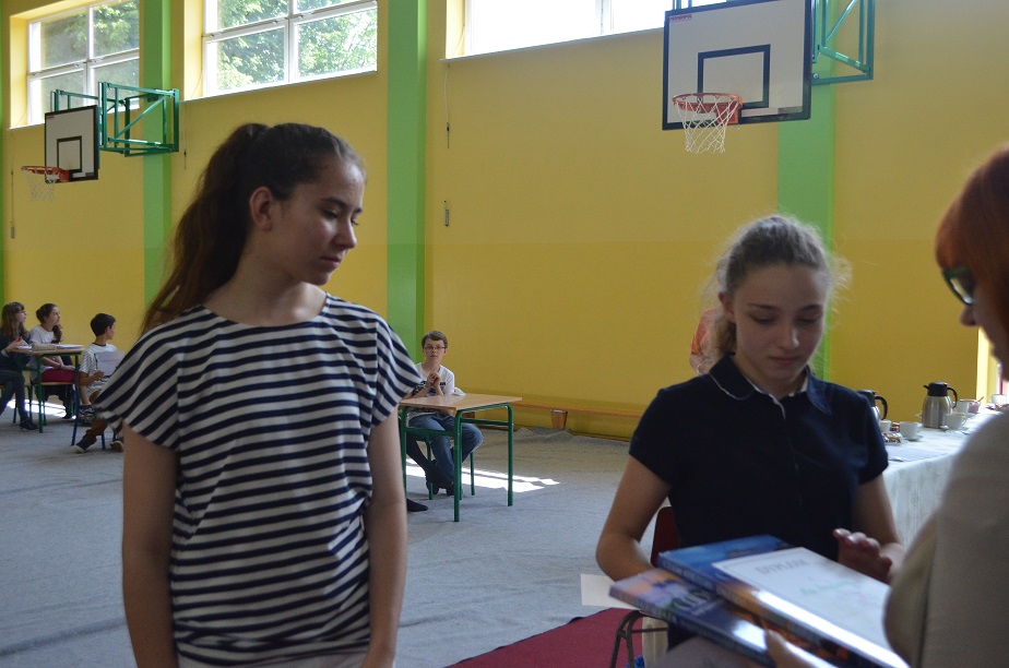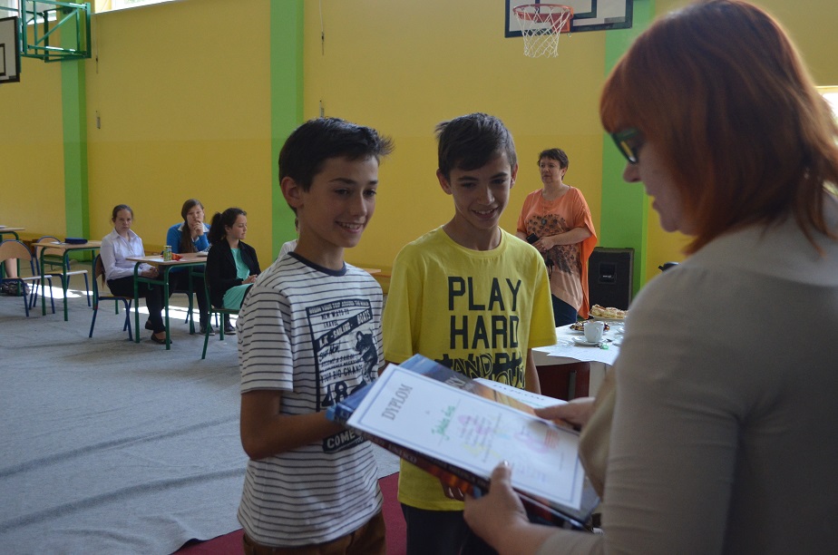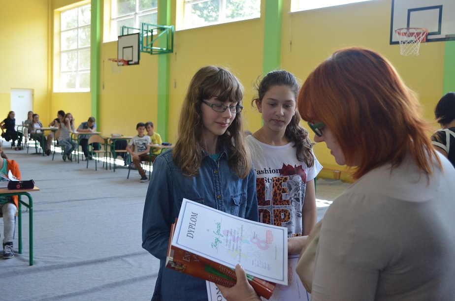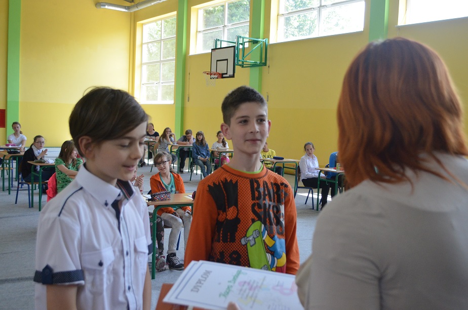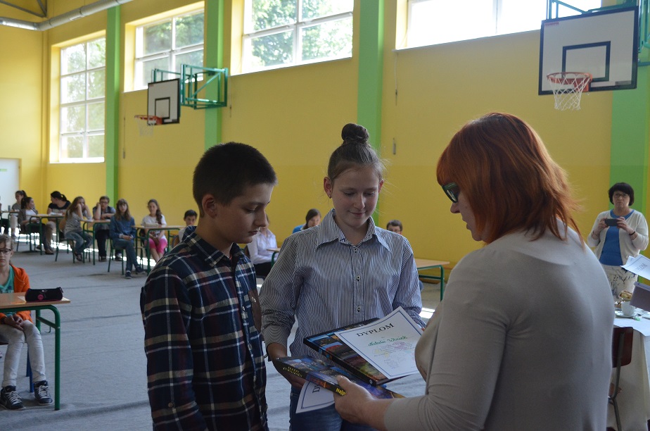 Po zakończonym konkursie Pani Dyrektor Irena Konarczak – Bojanek wraz z nauczycielką matematyki Panią Edytą Krajka wręczyły dyplomy oraz nagrody książkowe zwycięzcom.