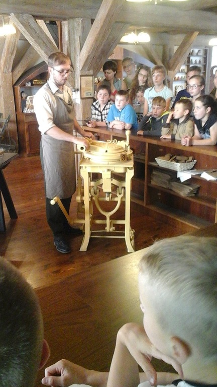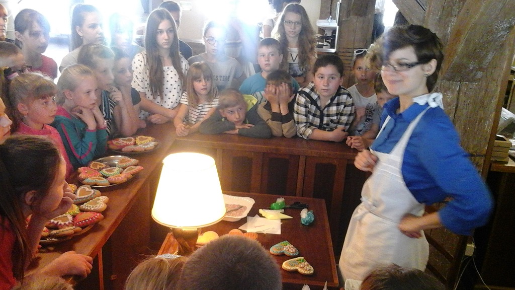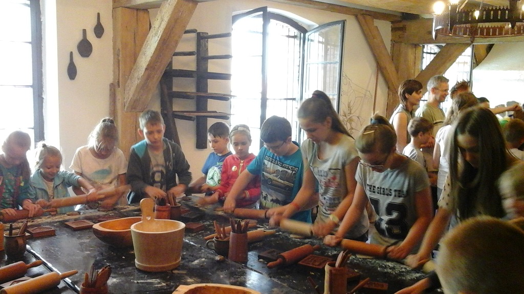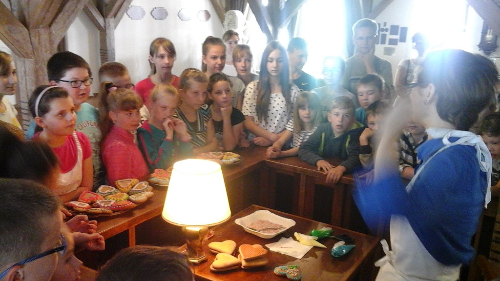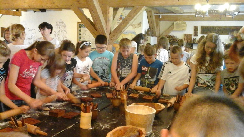 Na warsztaty z pieczenia pierników dzieci udały się do Torunia. W Muzeum Piernika obejrzały zabytkowe maszyny i narzędzia do wyrobu pierników. Animatorzy przybliżyli im historię dawnego wypieku. Zwiedzili również najważniejsze zabytki i miejsca związane z Mikołajem Kopernikiem.