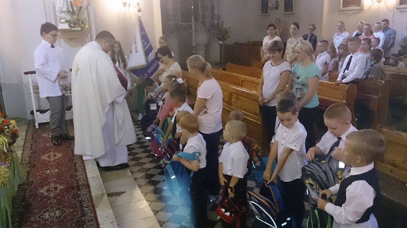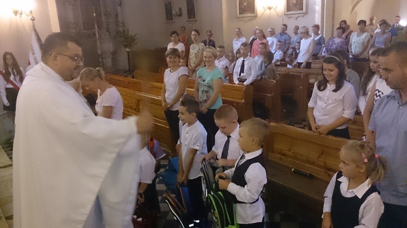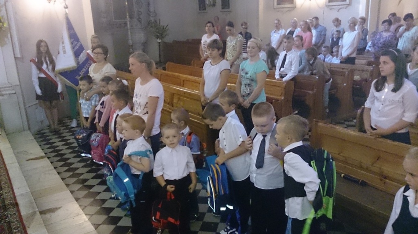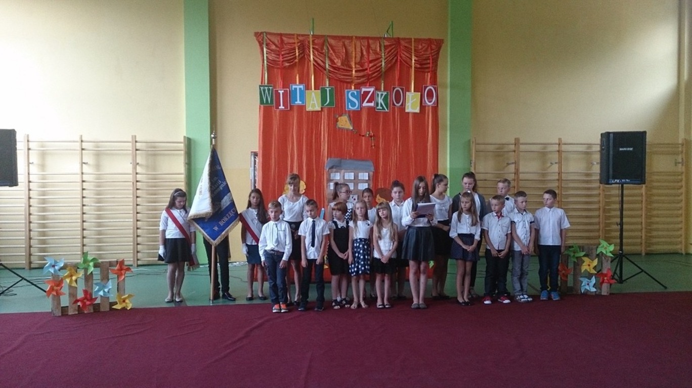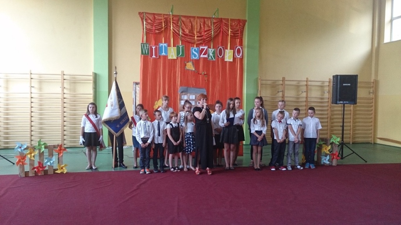 Pierwszego września jak co roku uczniowie po dwu miesięcznej przerwie z radością wrócili do szkoły. Najpierw wszyscy udali się na mszę św. do kościoła pod wezwaniem św. Marcina, podczas której ksiądz proboszcz najmłodszym uczniom poświęcił tornistry szkolne wraz z przyborami. Po mszy św. odbyła się uroczysta akademia na sali gimnastycznej. Oficjalną część rozpoczęto od wprowadzenia pocztu sztandarowego i wspólnego odśpiewania hymnu narodowego. Następnie wszystkich zebranych powitała przewodnicząca SU Julita Jakuszkowaik i zaprosiła na część artystyczną, w której uczniowie wspominali wakacje. Nie zabrakło też treści patriotycznych związanych z 76 rocznicą wybuchu II wojny światowej. W związku z nieobecnością p. Dyrektor głos zabrała p. Aldona Zmyślona, która szczególnie serdecznie powitała najmłodszych uczniów. Wszystkim zaś życzyła wielu sukcesów w nauce. Zapoznała też uczniów i ich rodziców z organizacją roku szkolnego 2015/2016. Po odśpiewaniu hymnu szkolnego uczniowie udali się do klas na spotkania ze swoimi wychowawcami.