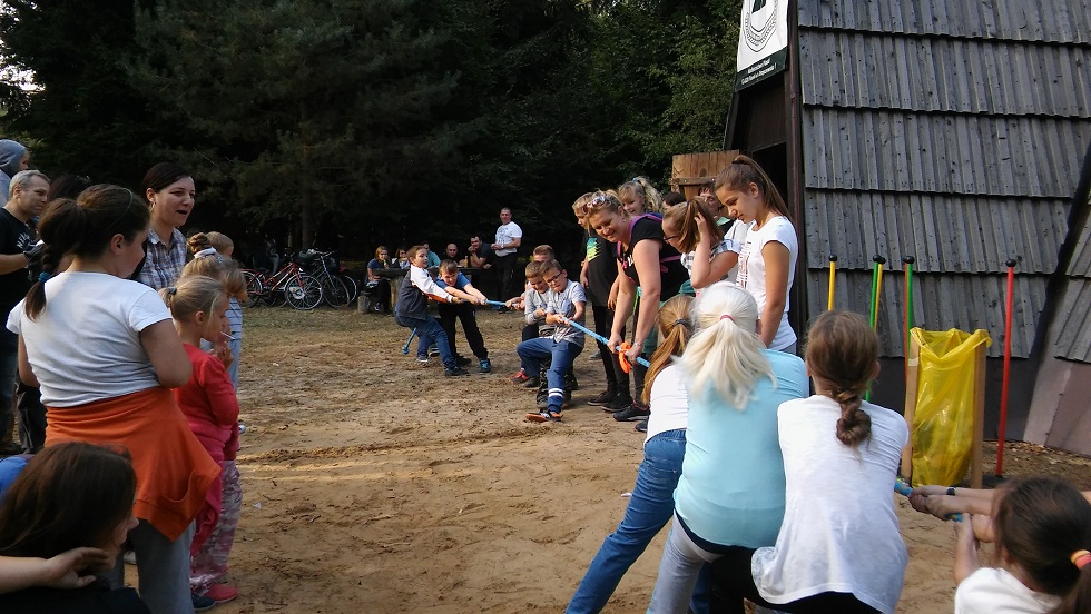 W piękne, niedzielne popołudnie 4 października odbył się Rodzinny Rajd Rowerowy. Jak co roku zebraliśmy się koło budynku szkoły i punktualne o godz. 14.00 wyruszyliśmy w trasę wiodącą do Wigwamu w Międzyborzu. Po trudach podróży zmęczeni, ale szczęśliwi dotarliśmy na miejsce gdzie na uczestników rajdu czekał smaczny posiłek w postaci kiełbasek z ogniska, bułek i soków. Po zasłużonym odpoczynku odbyły się zawody sportowe, w których uczestniczyli uczniowie i rodzice. Różnorodność konkurencji, przygotowanych przez nauczyciela wf-u cieszyła się dużym zainteresowaniem. Dzieci rywalizowały ze sobą min. w prowadzeniu piłki nogą, w biegach ze skakanka, skokach na piłce. Oprócz rywalizacji dużo radości sprawiły dzieciom nagrody zdobyte podczas sportowych konkurencji. Mimo wielu obaw dopisała ładna pogoda, która sprawiła, że dobre humory nie opuszczały uczestników do końca spotkania.
