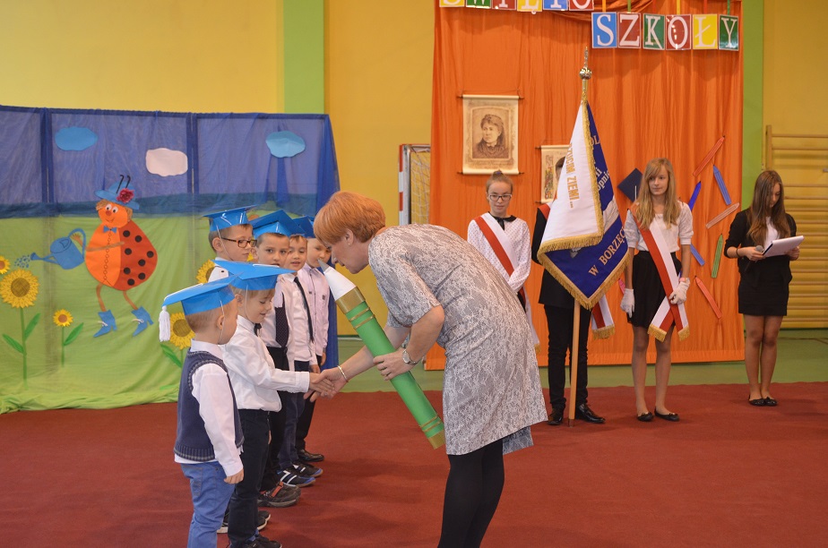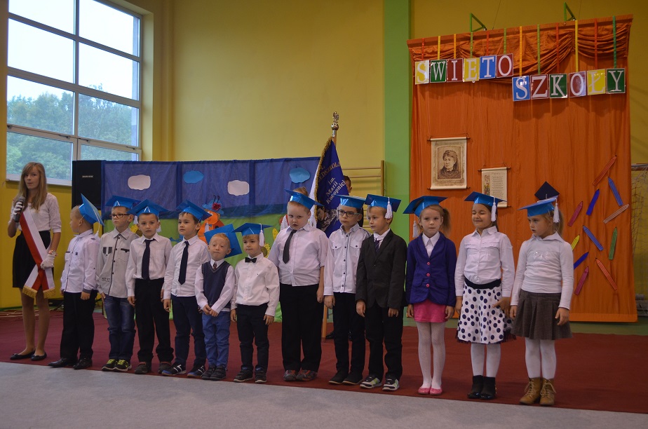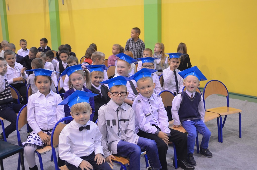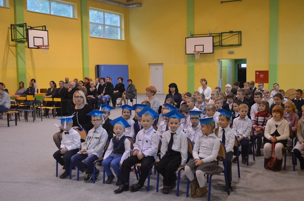 W tym dniu odbyło się również ślubowanie pierwszoklasistów oraz pasowanie na czytelnika biblioteki. Pani wicedyrektor dokonała aktu pasowania pierwszoklasistów na uczniów, którzy ślubowali godnie reprezentować naszą szkołę. Na pamiątkę tego wydarzenia dzieci otrzymały dyplomy oraz upominki przygotowane przez uczniów kl. VI.