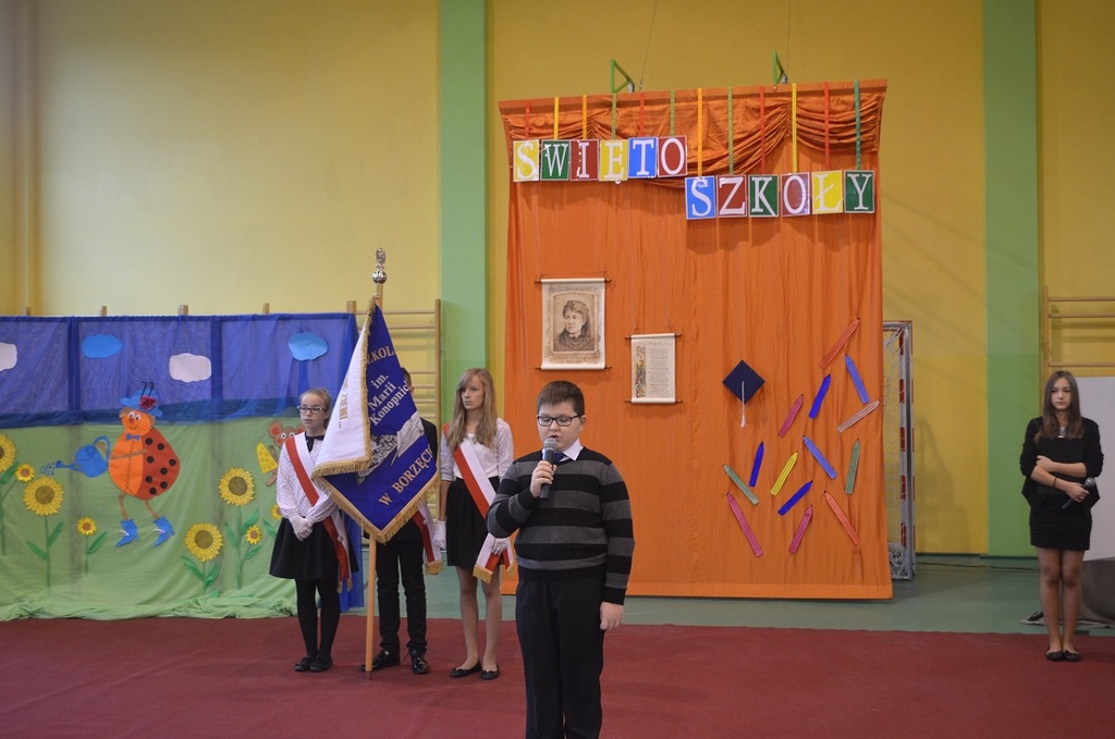 Dnia 14 października b.r. uczniowie naszej szkoły wraz z nauczycielami i rodzicami spotkali się na uroczystej akademii z okazji Święta Patrona, Dnia Edukacji Narodowej oraz Ślubowania kl. I, którą poprzedzała Msza Święta.