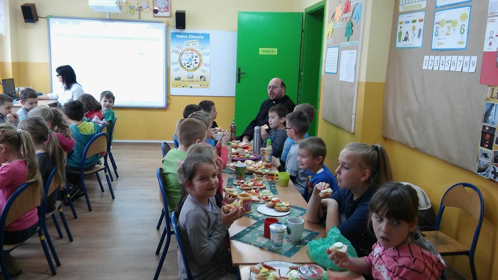 W ramach programu ,,Śniadanie daje moc” uczniowie kl. I – III pod czujnym okiem wychowawców aktywnie i z wielkim zapałem przystąpili do realizacji zadań określonych w regulaminie . Pierwszy jego etap stanowiły zajęcia edukacyjno – dydaktyczne, podczas których najmłodsi poznali m.in. 12 zasad zdrowego i prawidłowego żywienia oraz rolę śniadania w życiu człowieka.