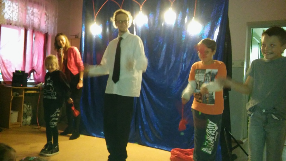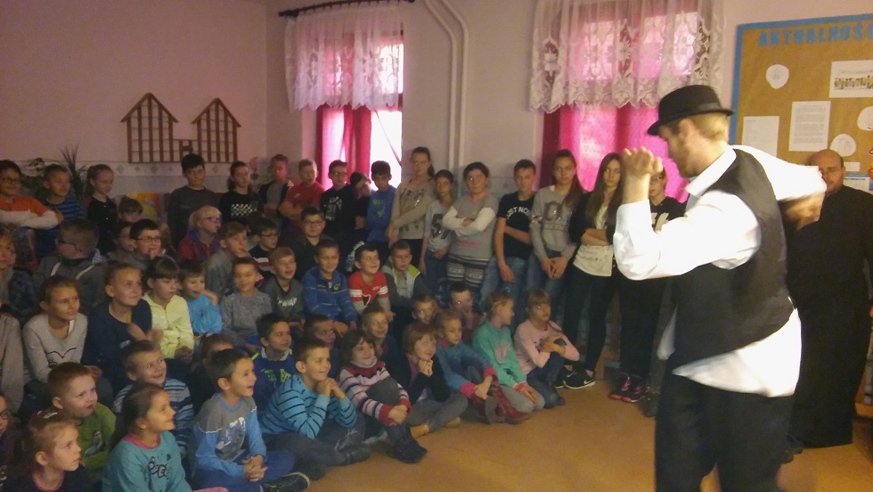 W dniu 03 listopada br po raz kolejny gościliśmy animatorów z grupy MOZAIKA z Poznania. Tym razem przedstawili sztukę pt. "Uwaga dzieci, Sztuka która świeci!". Było to spotkanie w którym artyści połączyli taniec i współczesne akrobacje świetlne. Udowodnili widzom, że jest możliwy udział światła w sztuce, które zachwyca swoimi barwami.