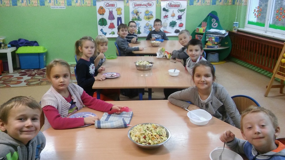 W piątek 27 listopada uczniowie klasy I w ramach programu „Śniadanie Daje Moc” własnoręcznie przygotowywali sałatkę owocową. Przed przystąpieniem do pracy, wszyscy pamiętali o dokładnym umyciu rąk i owoców.