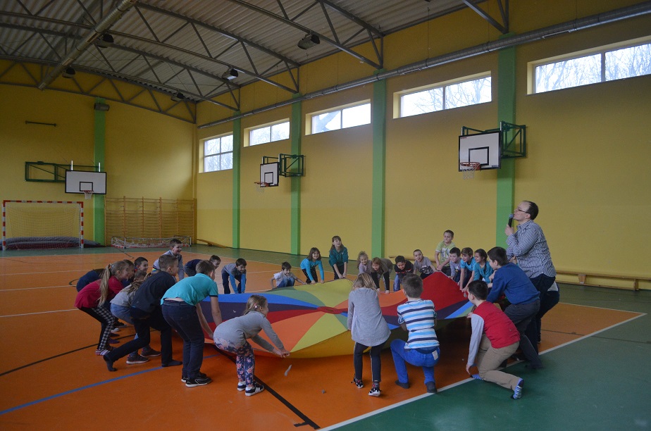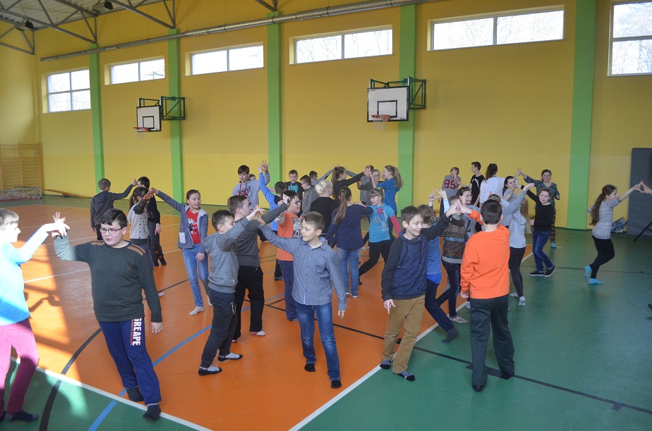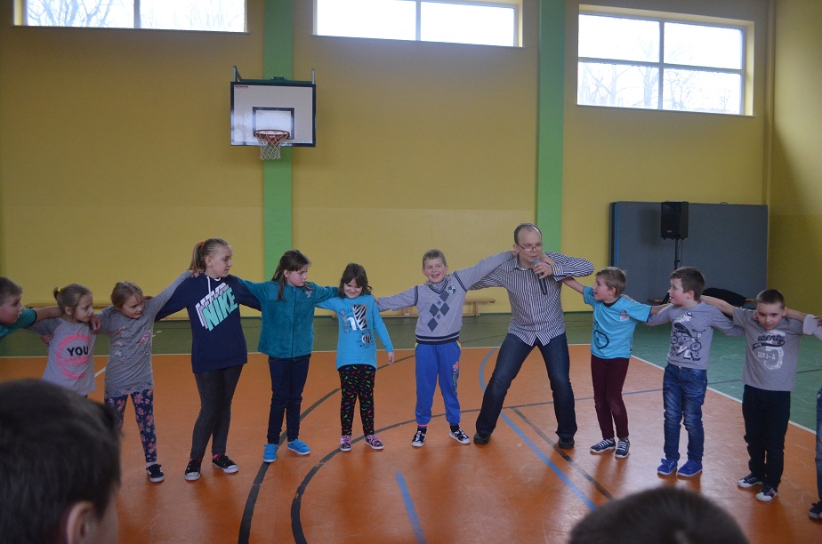 W drugiej części rekolekcji uczniowie brali udział w zajęciach z Panem Damianem - animatorem zabaw integracyjnych.