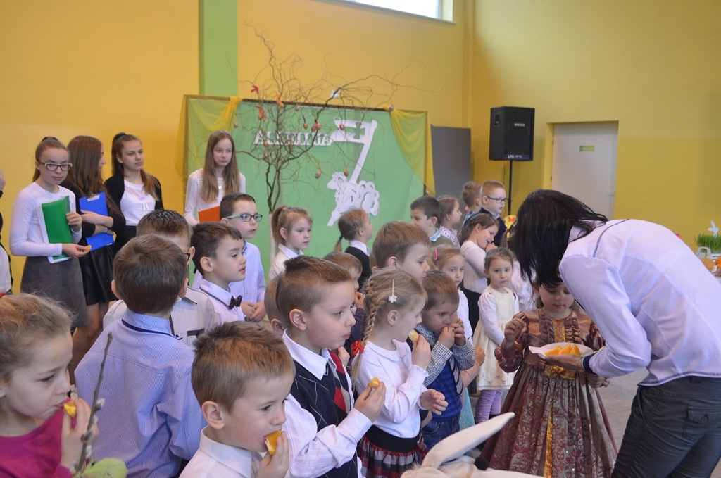 22 marca br w naszej szkole odbył się Apel Wielkanocny. Pod przewodnictwem Pani Zofii Mikołajczyk uczniowie klasy I, kl. VI oraz przedszkolaki przybliżyli wszystkim piękne polskie zwyczaje i tradycje związane z tymi najważniejszymi w roku świętami.