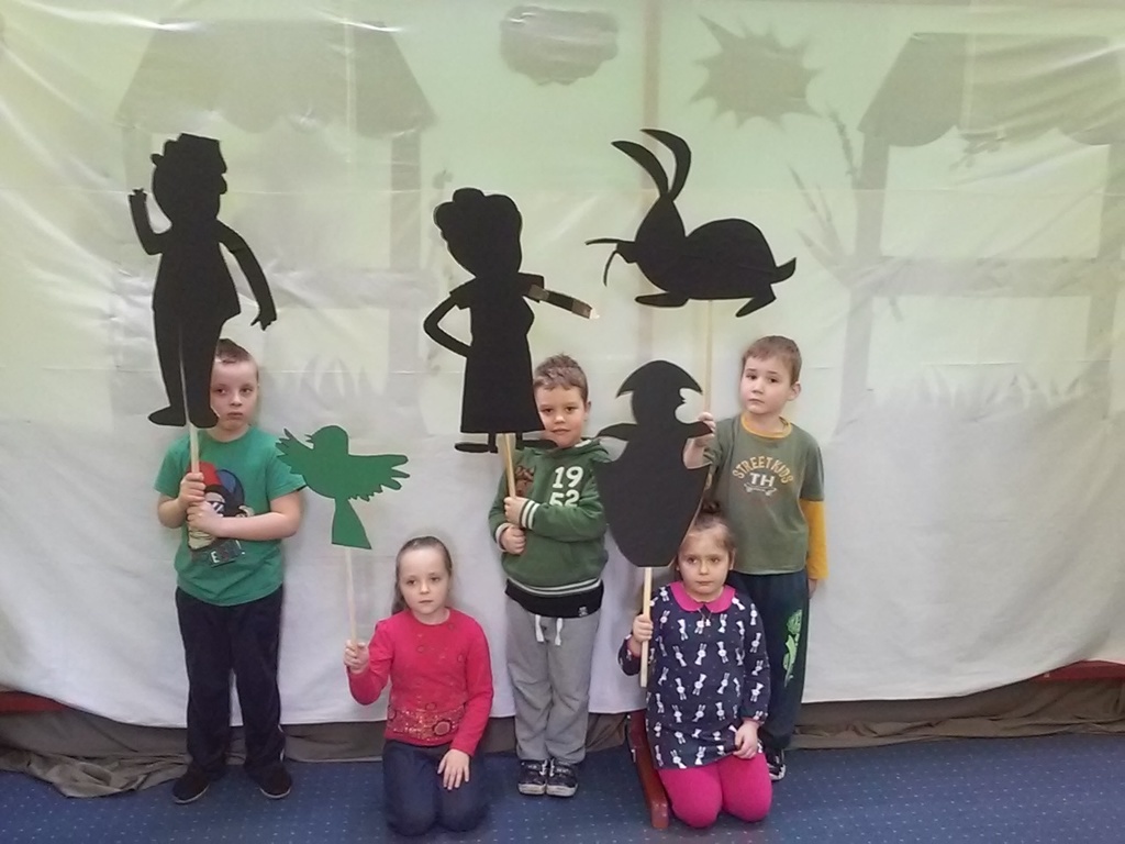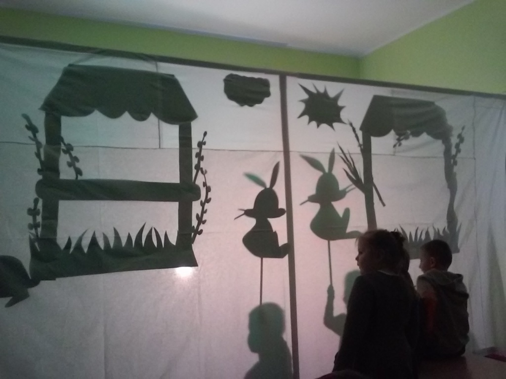 W teatrze cieni pojawiły się jajka, kurczaki, zajączki, baranki. Poprzez taką formę teatralną w fajny sposób można przedstawić tradycje i zwyczaje związane z danymi świętami- w tym przypadku dzieci pokazały m.in. śmigusa-dyngusa oraz co powinno znaleźć się w koszyczku wielkanocnym.