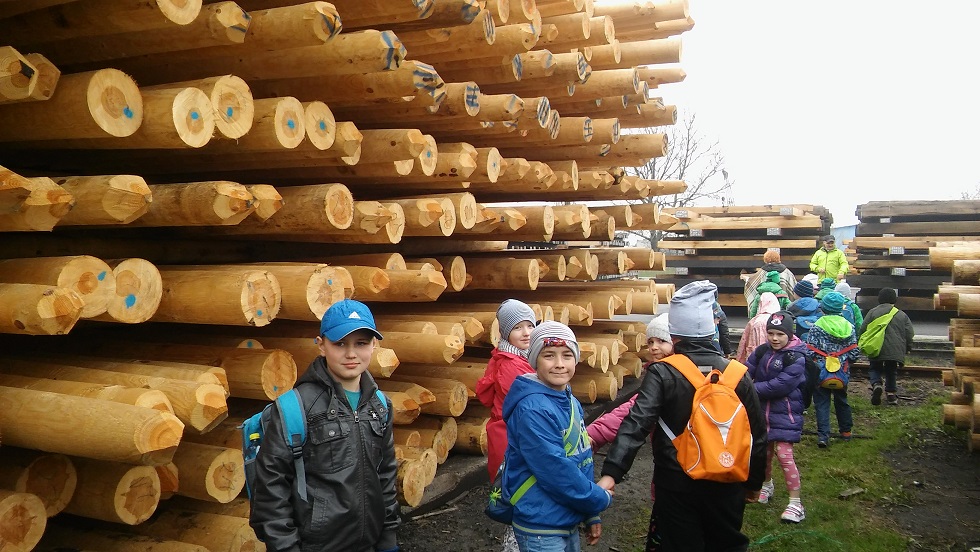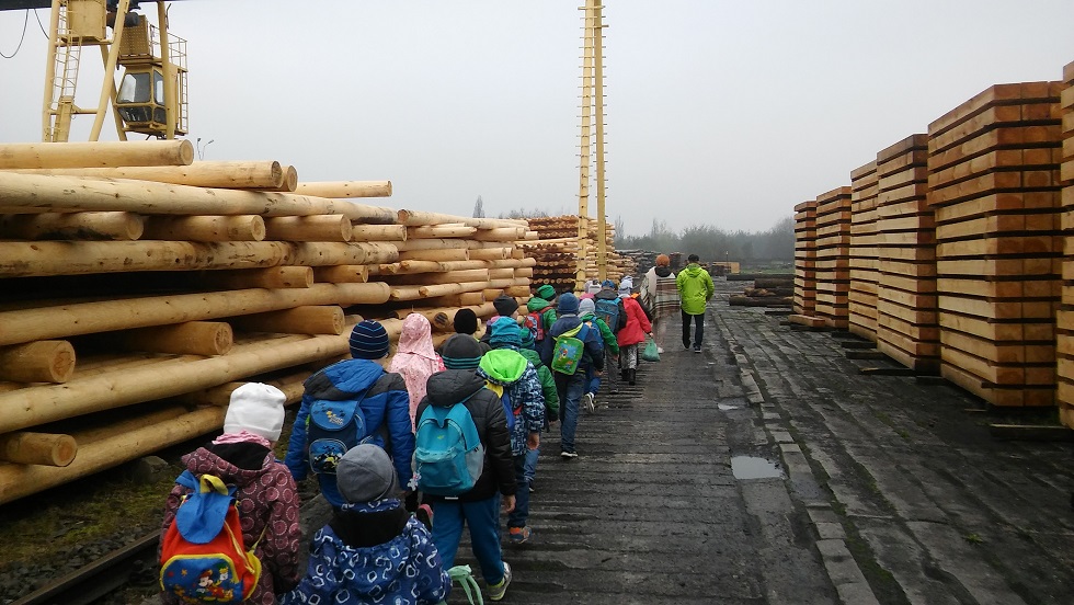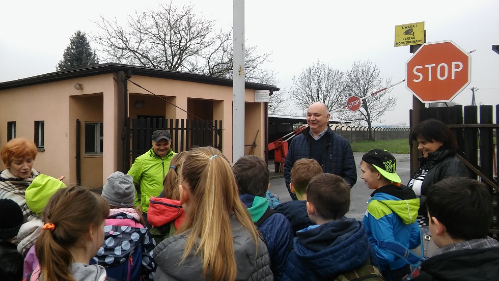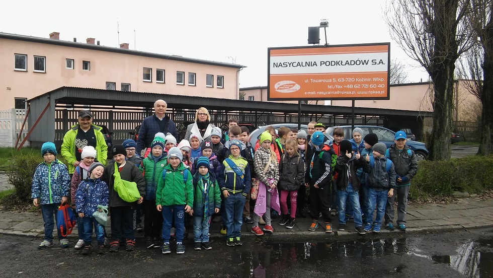 Następnie uczniowie udali się do Nasycalni Podkładów, gdzie zostali przywitani przez prezesa spółki p. Ryszarda Zmyślonego. Po zakładzie oprowadził ich i pokazał produkcję podkładów kolejowych specjalista BHP p. Radosław Miedziński. Na zakończenie czekał na dzieci słodki poczęstunek ufundowany przez zakład.