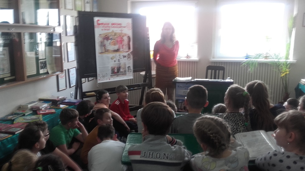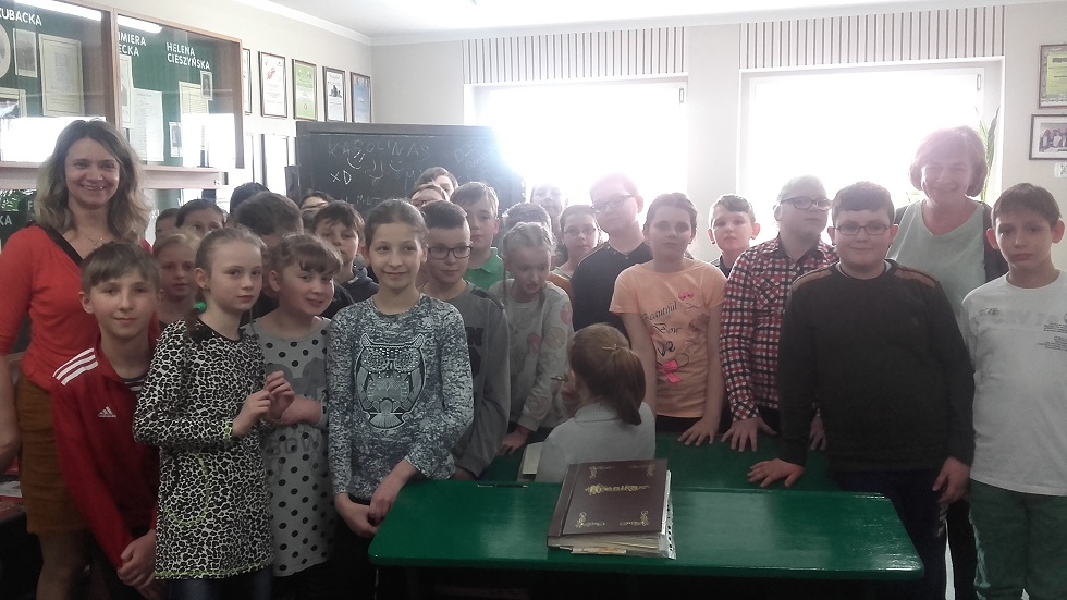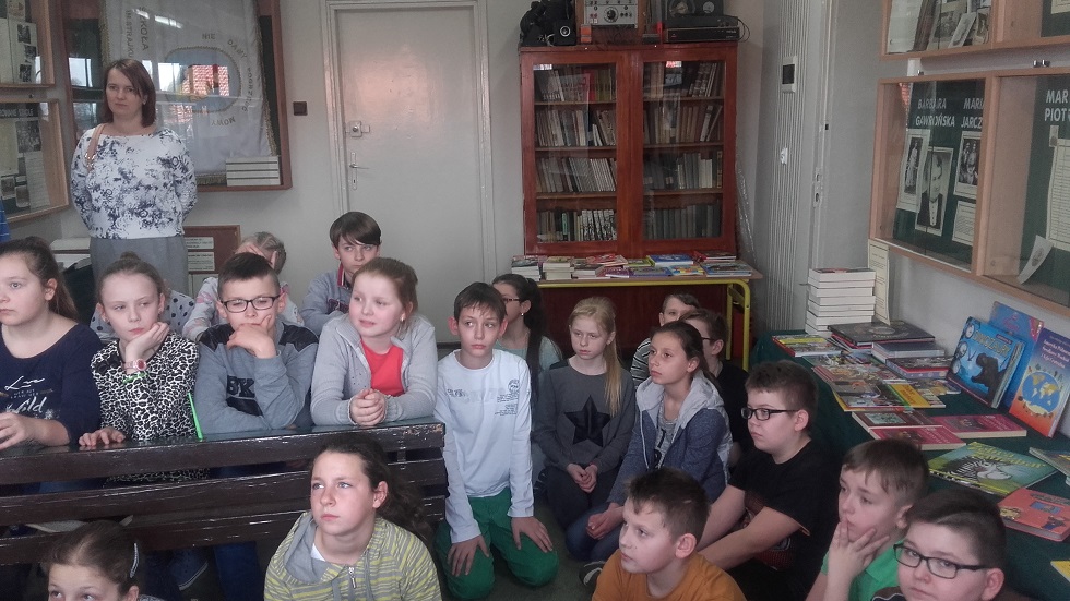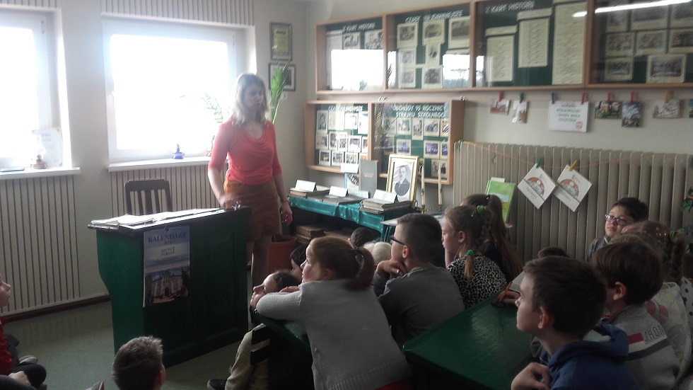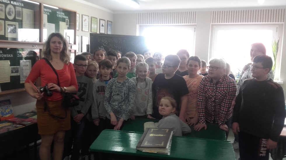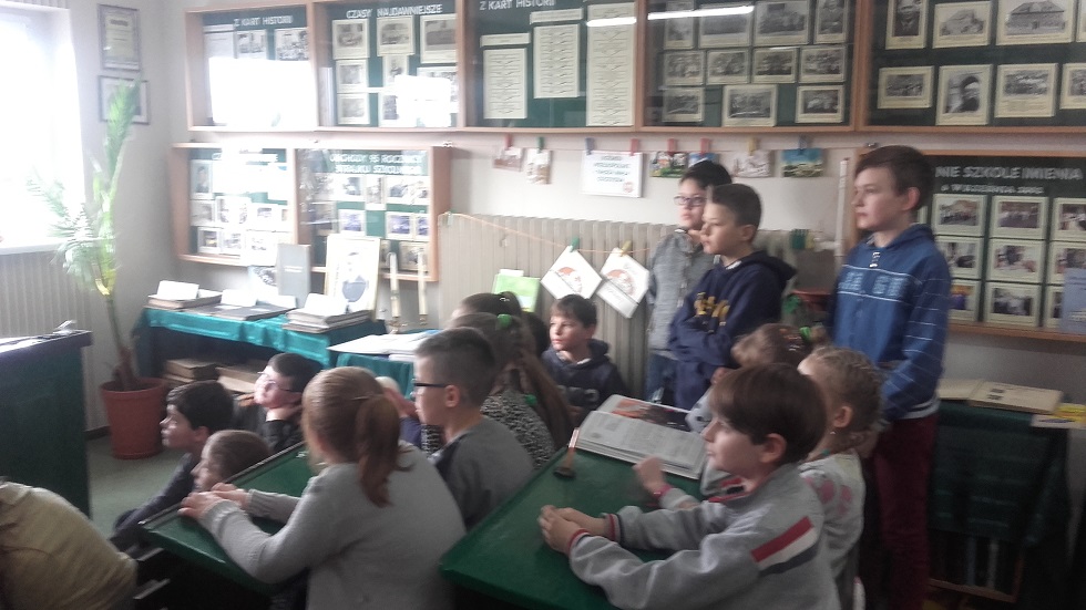 Po przedstawieniu uczniowie udali się do szkoły podstawowej nr 1 im. Strajku Dzieci Koźmińskich 1906-1907. W sali pamięci odbyła się ciekawa lekcja historii związana ze strajkiem uczniów, który miał miejsce w tej szkole na początku XX w. Nauczyciel historii p. Marzena Adamkiewicz, absolwentka naszej szkoły, w interesujący sposób przybliżyła nam wydarzenia z tamtych lat.