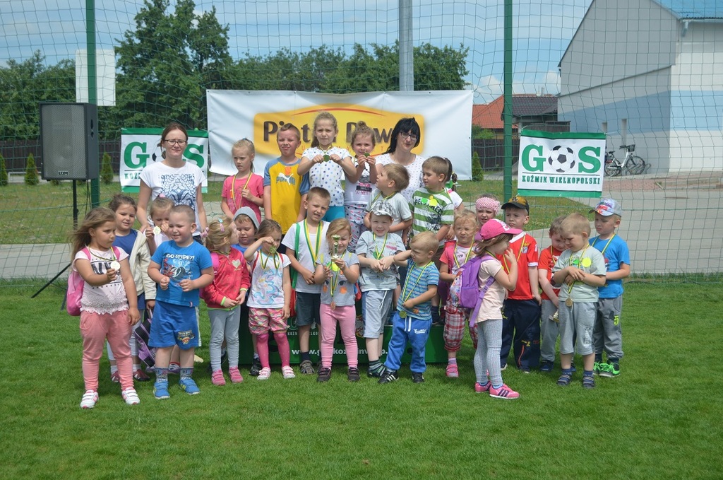 3 czerwca 2016 r na boisku sportowym w Koźminie Wielkopolskim odbyła się IV Olimpiada Przedszkolaków. W zawodach udział wzięły dzieci z oddziałów przedszkolnych z terenu Miasta i Gminy Koźmin Wielkopolski. Przygotowano konkurencje tj. rzut do studni dzieci 2-letnie, rzut do celu dzieci 3-4-letnie, slalom 10-cio osobowa reprezentacja dzieci 3-4-letnich, rzut do kosza dzieci 5-6-letnie, strzał na bramkę dzieci 5-6-letnie, biegi na dystansach 2-latki -50m, 3-latki 80m, 4-latki 100m, 5-latki 170m. Biegli również pracownicy oddziałów przedszkolnych, natomiast dla dyrektorów placówek odbyła się konkurencja rzut do celu. Oto sukcesy naszych dzieci: