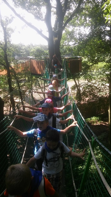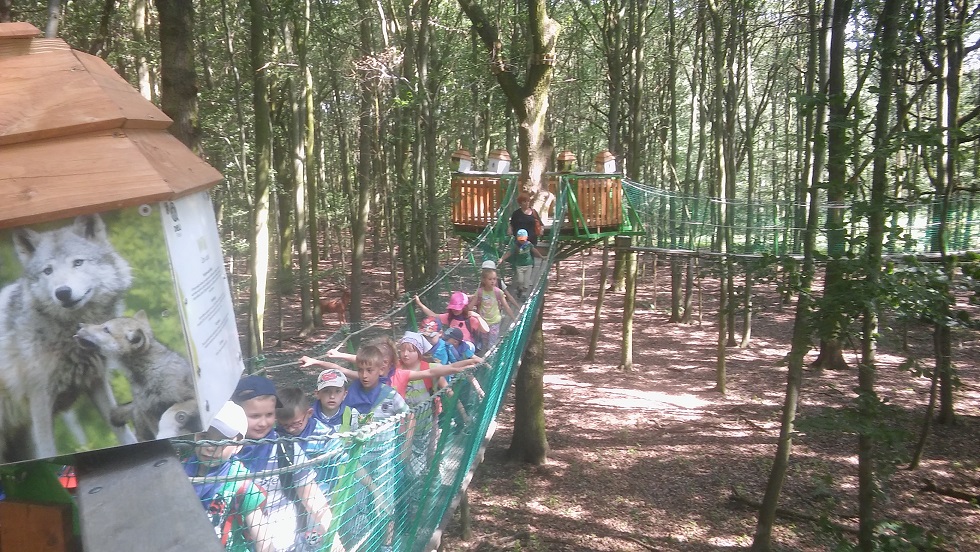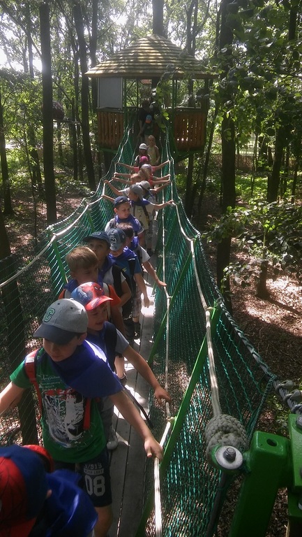 Wyjątkową atrakcją okazała się Podniebna Eko-Wioska gdzie trasami wiodącymi wśród drzew nad ziemią podziwialiśmy piękno otaczającej nas przyrody. Spacerowaliśmy odwiedzając kolejne domki na drzewach i tarasy widokowe.