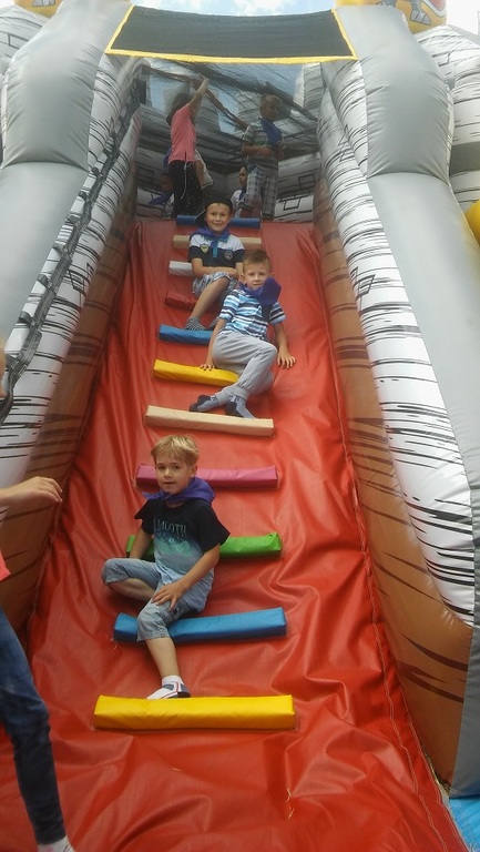 Skorzystaliśmy również z aktywnej formy wypoczynku na świeżym powietrzu, bawiąc się na huśtawkach, zjeżdżalniach i dmuchanych zamkach. Fajną atrakcją były również gry interaktywne o tematyce przyrodniczej z mamutem DELI w roli głównej.