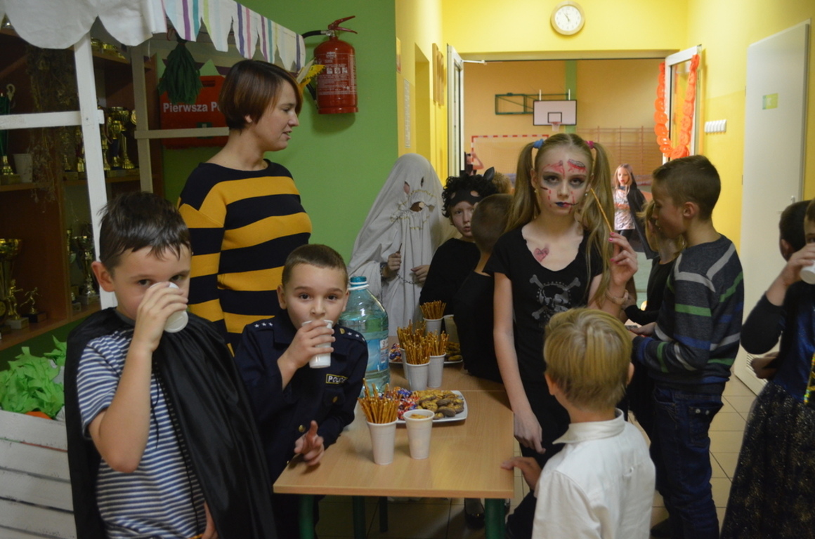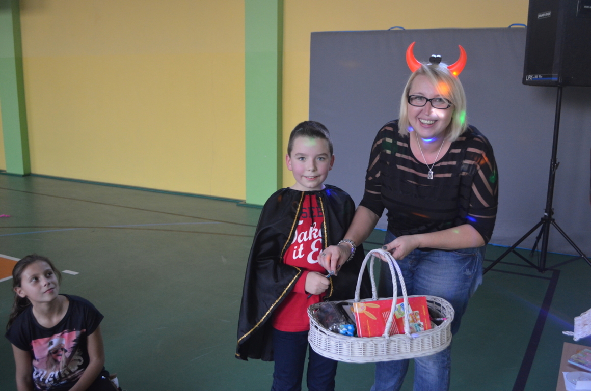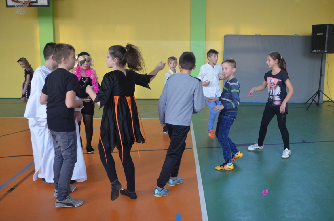 W czwartkowe popołudnie pod hasłem „Jesienne pląsy” odbyła się w naszej szkole dyskoteka dla klas I-VI . Zabawa obfitowała wieloma atrakcjami. Była loteria fantowa z bardzo ciekawymi nagrodami dla każdego uczestnika, był bufet z poczęstunkiem. Podczas tych „Jesiennych pląsów” uczniowie dokonali również wyboru dwóch najciekawszych strojów- zwycięzcami zostali Wirginia Kaszuba z klasy VI oraz Emilia Cykowiak z klasy II . Do tańca muzykę zorganizowali uczniowie klasy VI.