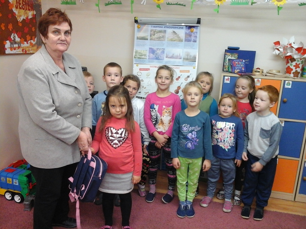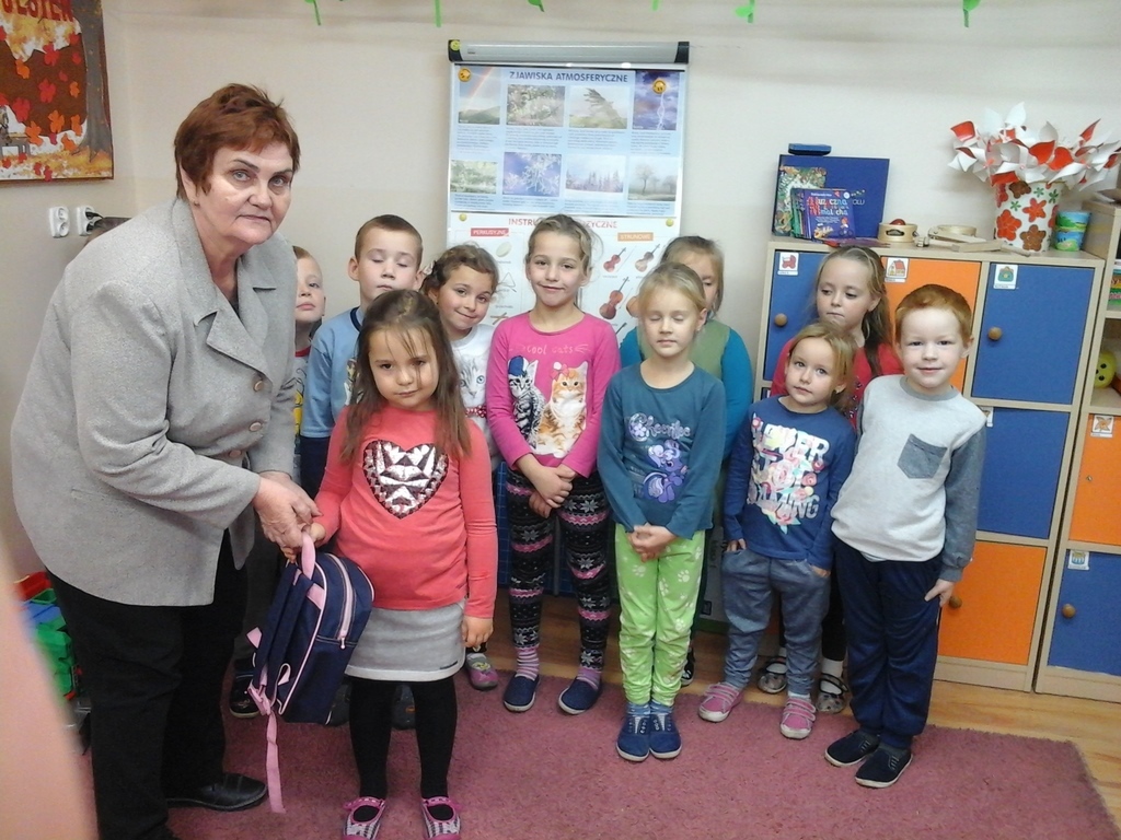Wspólnie z biblioteką szkolną dzieci z grupy "0" przystąpiły do akcji "Plecaczek z książką". Akcja ma na celu promowanie literatury dziecięcej czytanej przez rodziców. Każdy przedszkolak zabierze do domu plecak z książką, którą przeczyta mu mama lub tata, a następnie wykona ilustrację ulubionej postaci z przeczytanej bajki. Rysunek trafia do plecaka wraz z książką i wędruje do następnego dziecka.