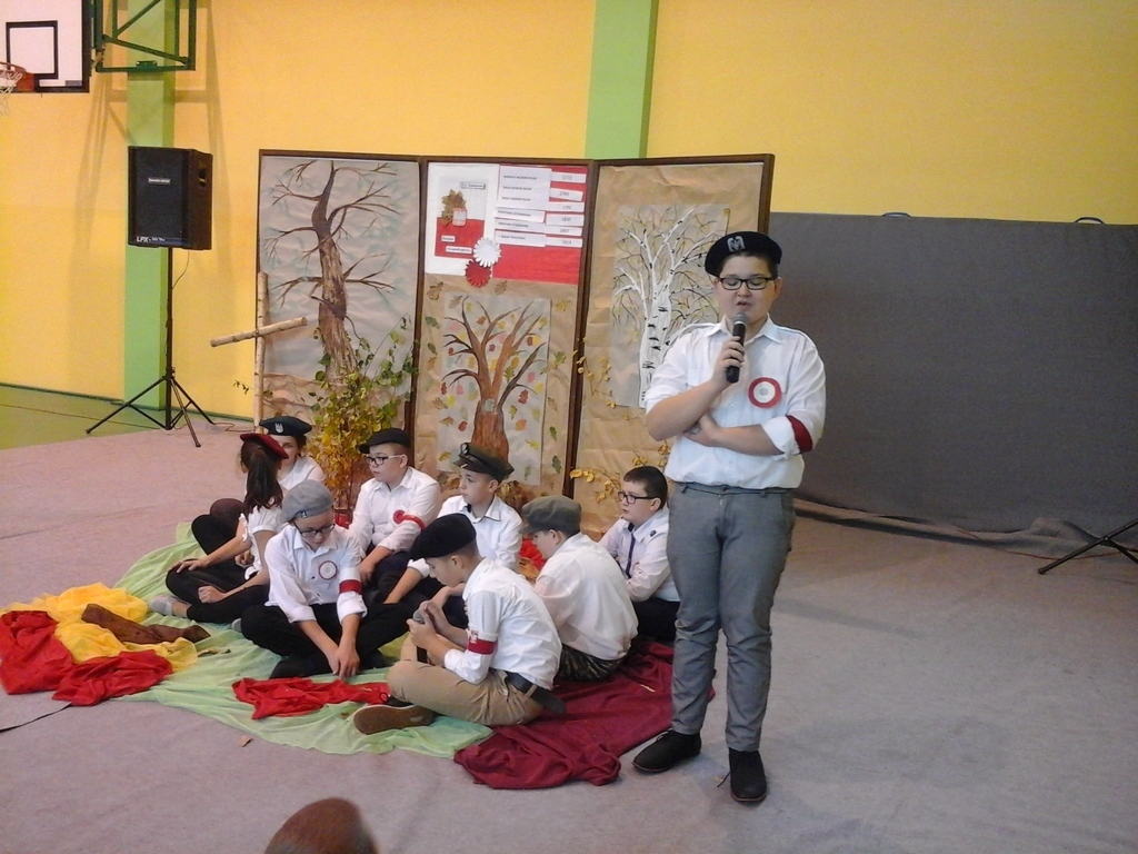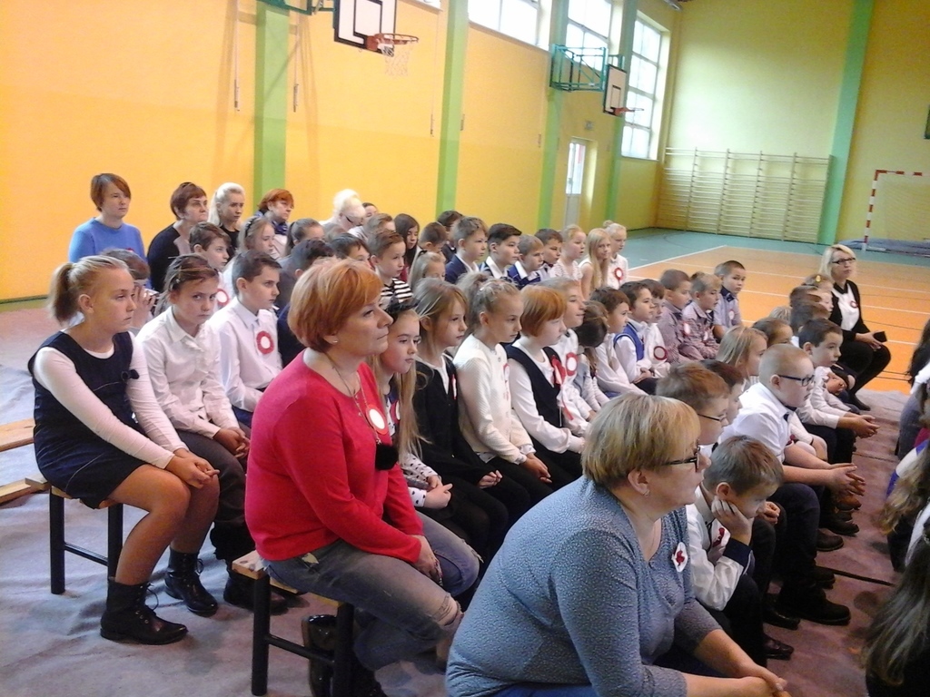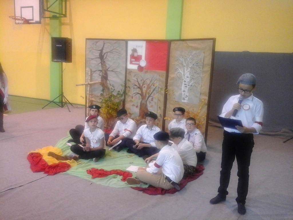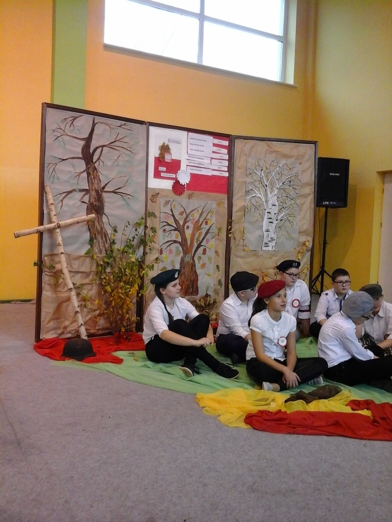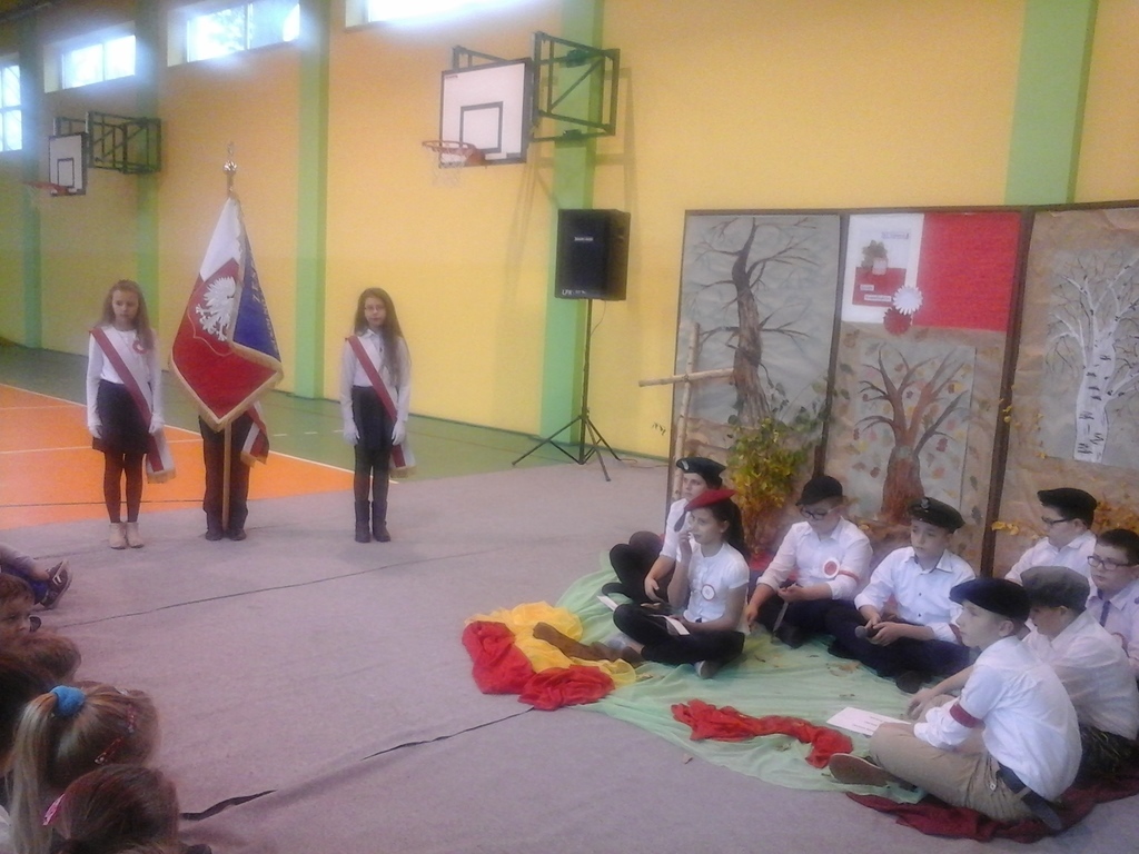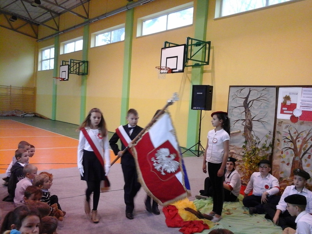 W czwartek w przeddzień Narodowego Święta Niepodległości odbył się u nas w szkole uroczysty apel upamiętniający to właśnie święto. W tym dniu cała nasza społeczność w skupieniu wysłuchała pięknej, historycznej inscenizacji przeplatanej pieśniami patriotycznymi. Na znak naszego patriotyzmu wszyscy mięliśmy wpięte własnoręcznie wykonane biało-czerwone kotyliony. Udział w apelu był doskonałą lekcją patriotyzmu.