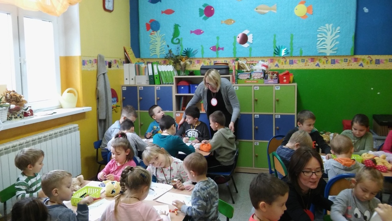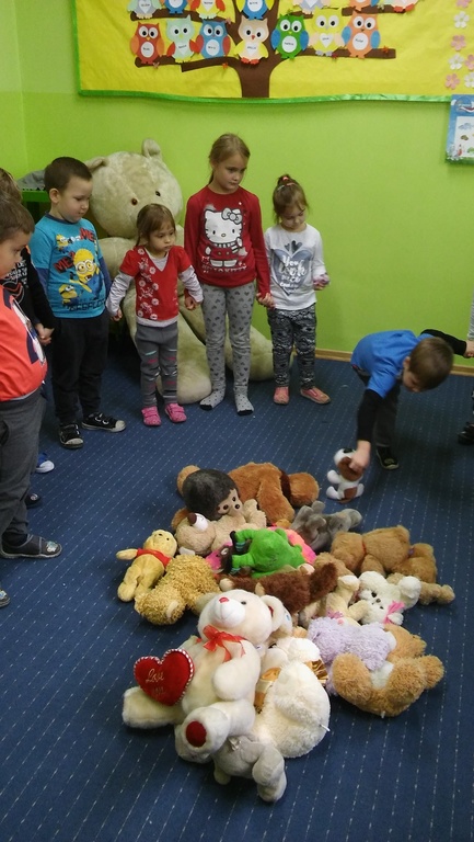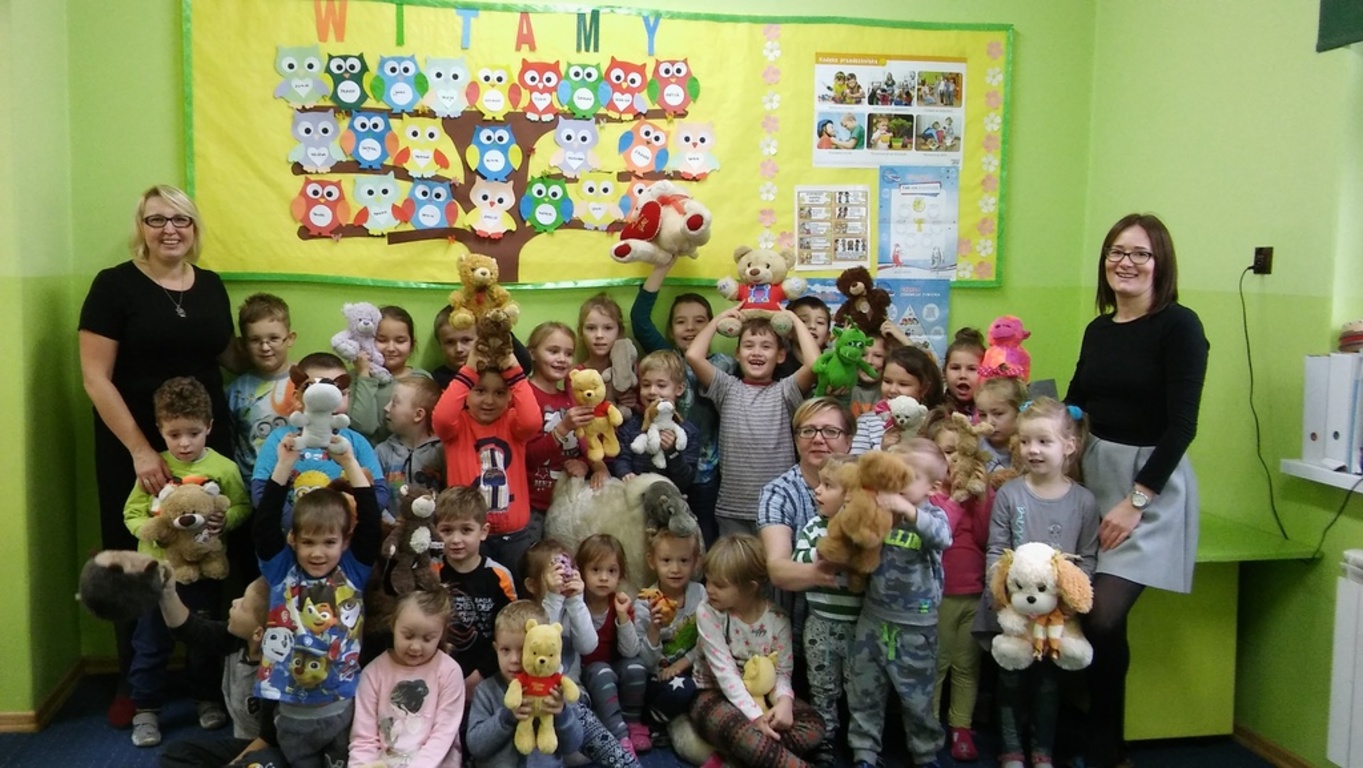 25 listopada na całym świecie obchodzony jest Dzień Pluszowego Misia. Dzień ten uczciły również dzieci z naszego Zespołu. W piątek na specjalne zaproszenie uczniowie klasy I i II z uśmiechem na twarzy udali się do przedszkola dzierżąc w rączce ulubionego pluszaka, aby wraz z kolegami i koleżankami z przedszkola uczcić ten wyjątkowy dzień. Każdy z dumą opowiadał o swoim misiu, jak ma na imię oraz jak długo już mu towarzyszy. Całe przedszkole zmieniło się w Misiową Krainę i rozpoczęła się wesoła zabawa pod kierunkiem p. Sylwii. Zabawy odbywały się w rytm piosenek o misiach, malowano postacie misiów, a bohaterami zagadek były oczywiście... misie. Wspólna zabawa zakończyła się wręczeniem wszystkim misiowych medali.