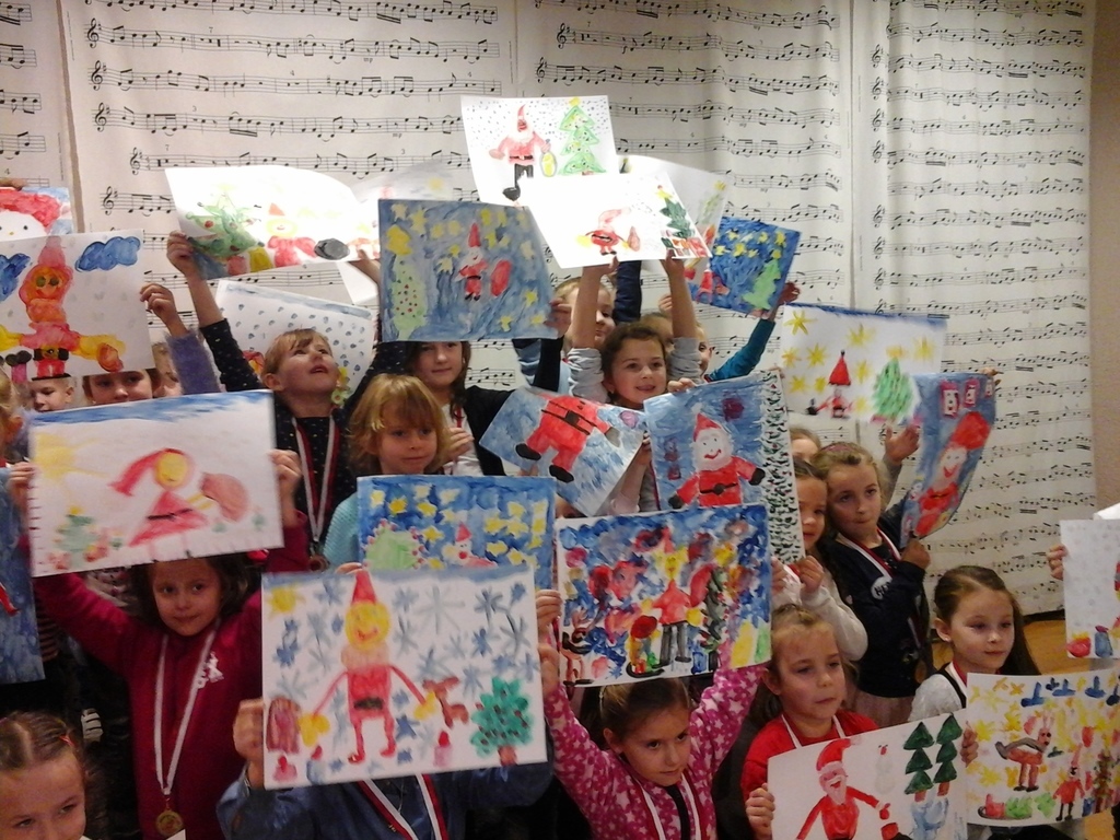 Dnia 05.12.2016r. odbyły się warsztaty plastyczne dla dzieci 6-letnich pt. „ Mój wesoły Mikołaj”. Organizatorem warsztatów był Gminny Zespół Instytucji Kultury w Koźminie Wlkp. Nasze przedszkole reprezentowali: Tomasz Fabisiak, Patryk Kramarczyk, Dawid Tyrakowski, Weronika Sobańska i Zuzanna Krzeszewska. Uczestnicy warsztatów mieli za zadanie namalować wesolutkiego Mikołaja. Po ciężkich trudach malarskich wszyscy uczestnicy zostali zaproszeni na mały poczęstunek, a w tym czasie jury miało ciężki orzech do zgryzienia, gdyż wszystkie prace były przepiękne. Mali artyści zostali nagrodzeni medalem dla „Najlepszego Malarza” , dyplomem oraz małym upominkiem. Miłym akcentem było wspólne zdjęcie małych malarzy.