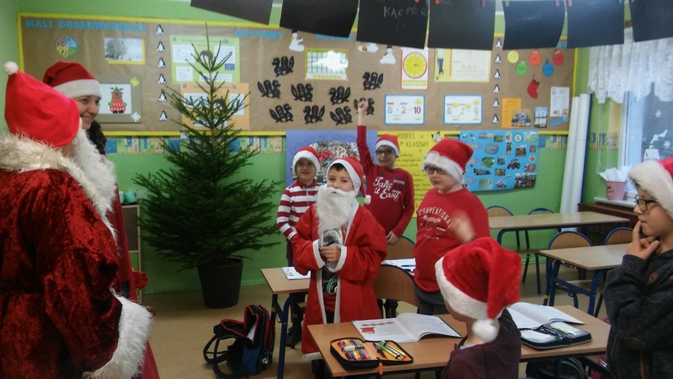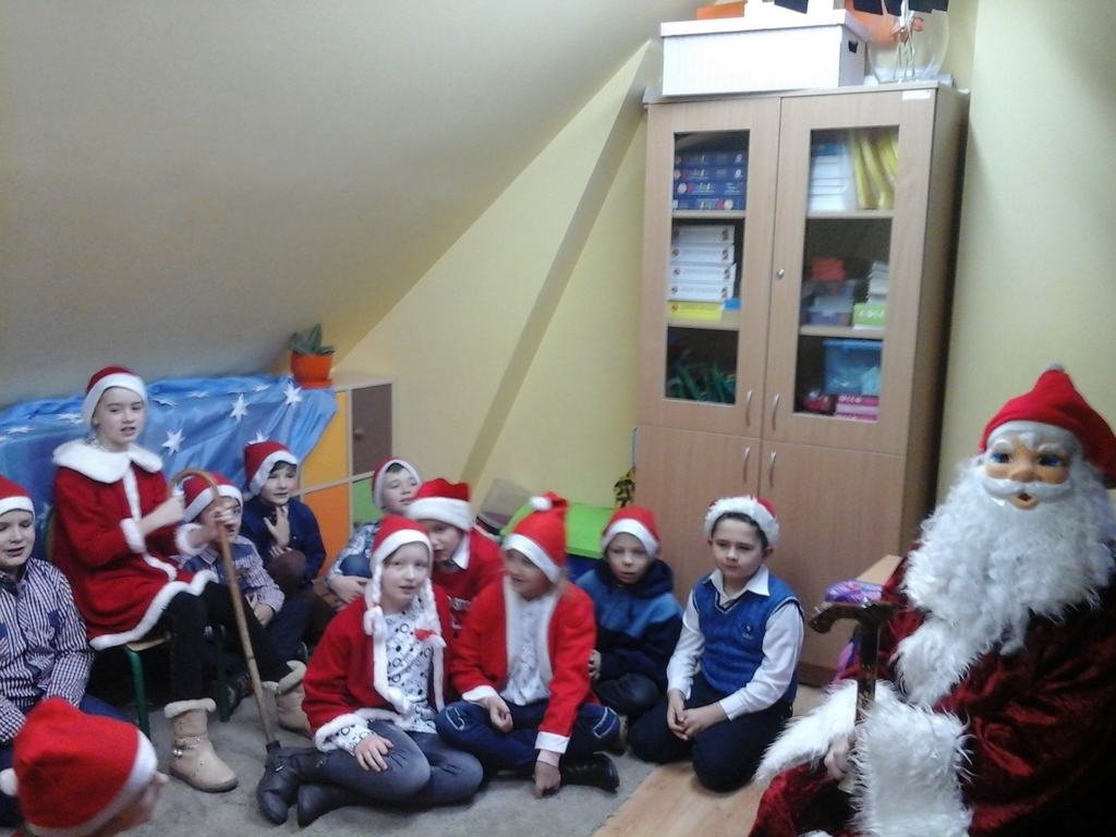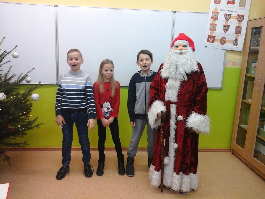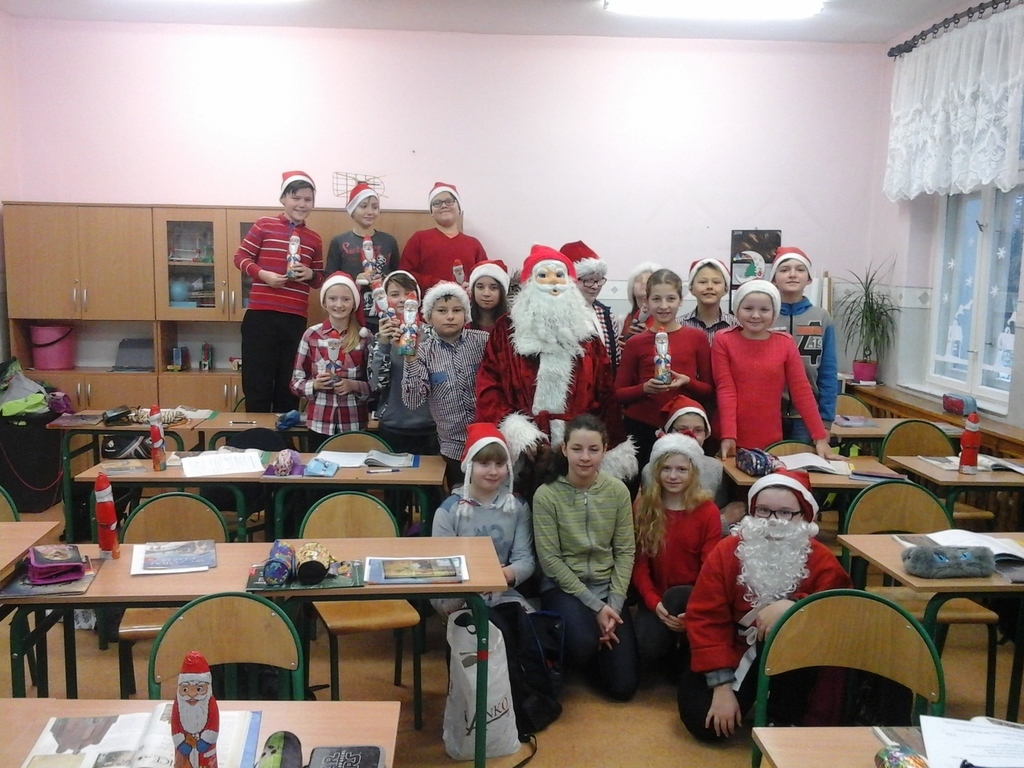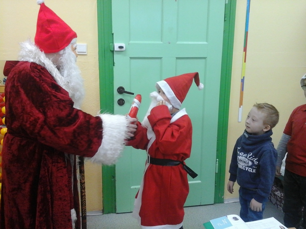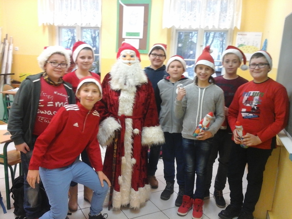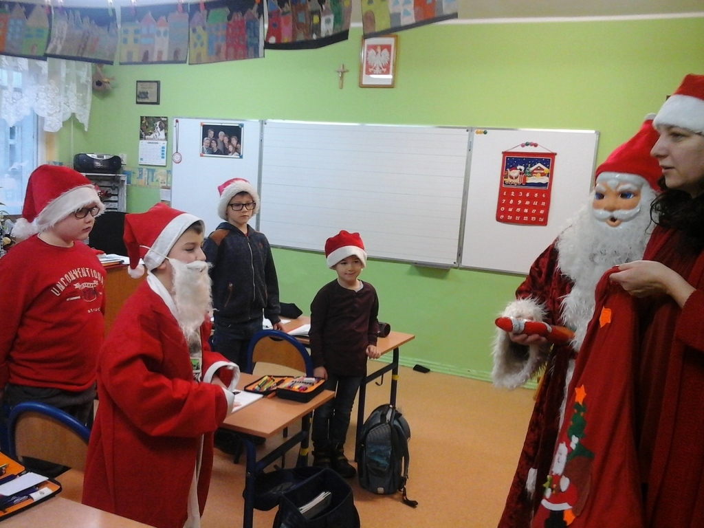6 grudnia w godzinach porannych zawitał do naszej szkoły. Jego nadejście poprzedził charakterystyczny dźwięk dzwoneczków, który rozbrzmiewał na szkolnych korytarzach. W asyście pomocnika odwiedził uczniów we wszystkich klasach, zamienił z dziećmi i nauczycielami kilka słów oraz – jak to ma w zwyczaju, obdarował każdego ucznia słodyczami.