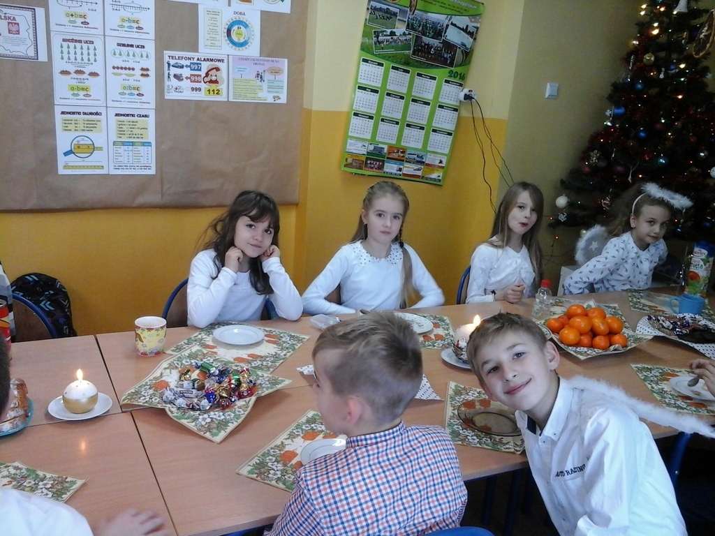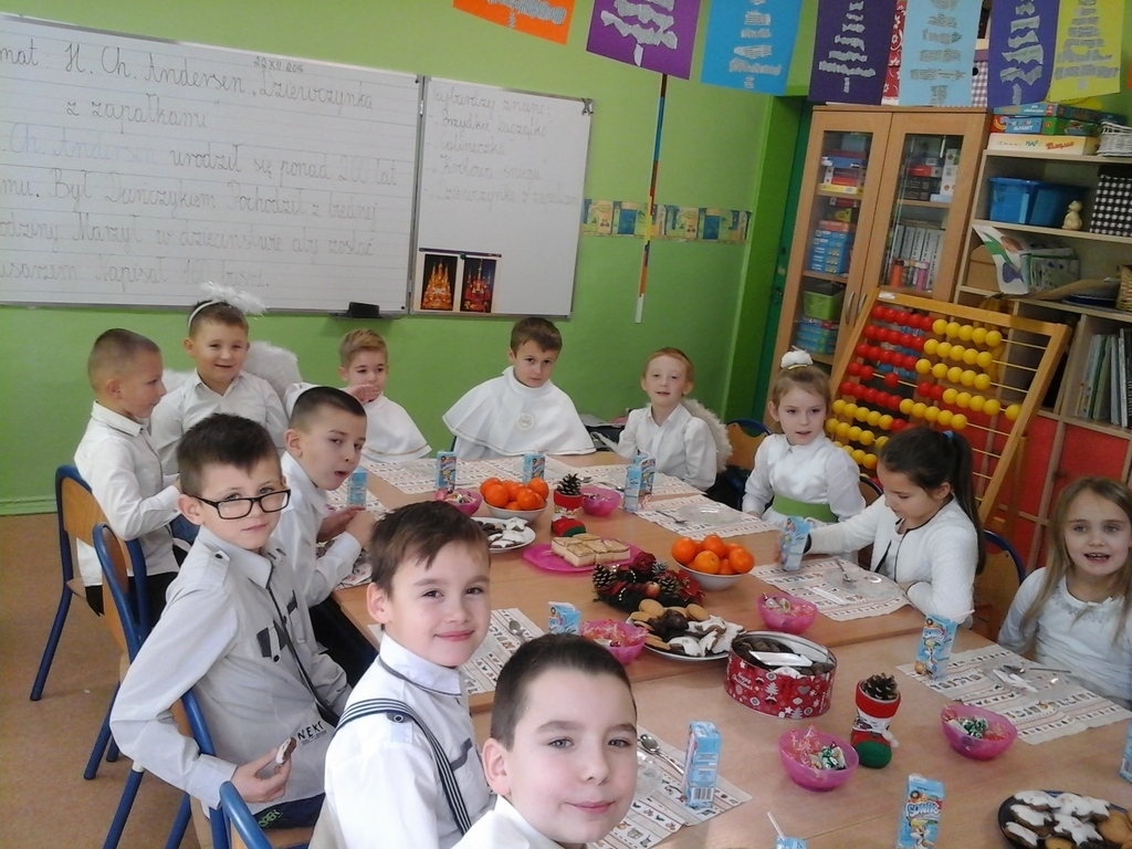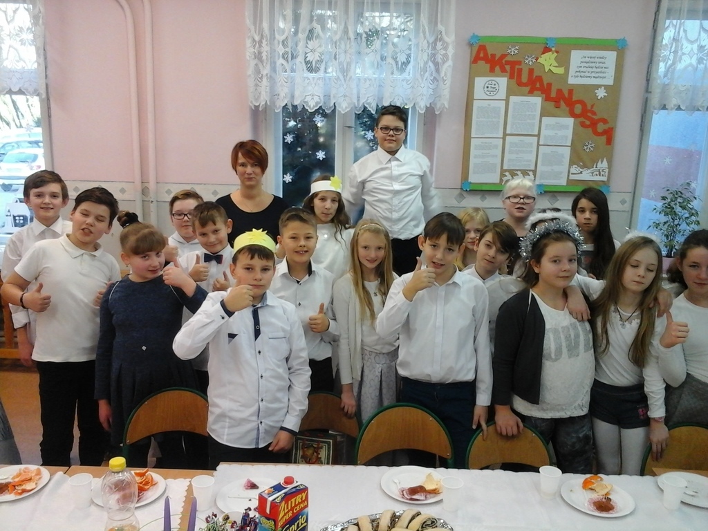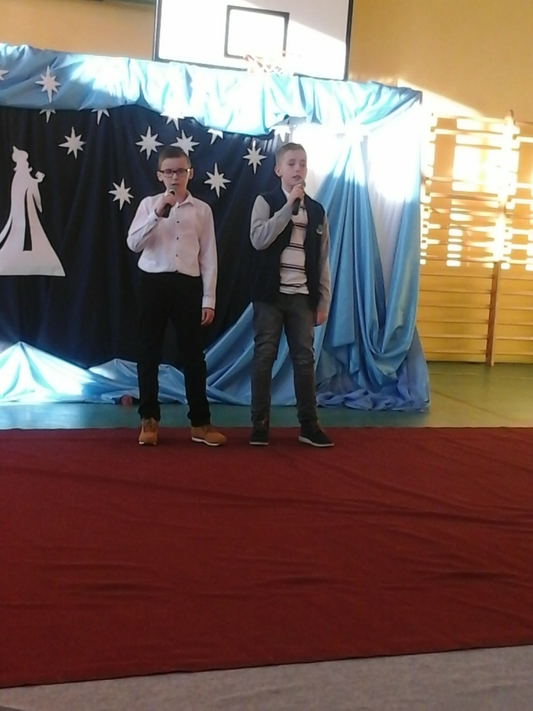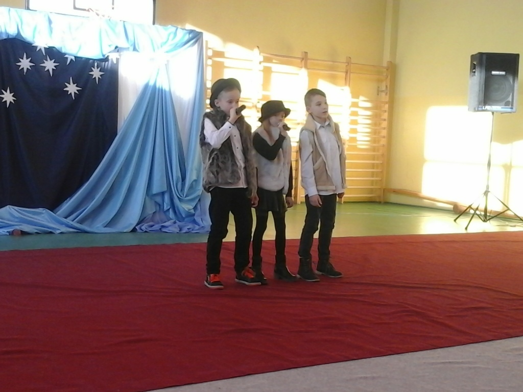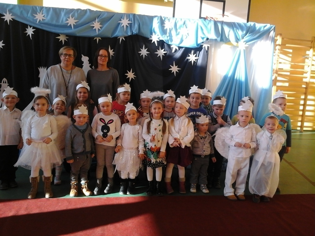 22 grudnia w naszej szkole panował świąteczny nastrój. Dominował w tym dniu kolor biały, gdyż nasze dzieci przebrane były za aniołki. O godz. 10.00 wraz z naszymi zaproszonymi gośćmi zebraliśmy się na sali gimnastycznej, aby obejrzeć część artystyczną w wykonaniu naszych dzieci i rodziców. Gościliśmy w tym dniu ks. Proboszcza Macieja Krulaka, który rozpoczął naszą uroczystość przeczytaniem fragmentu z Pisma św. mówiącego o narodzeniu się Pana Jezusa. Gościliśmy również radnych pana Wojciecha Dykcika oraz Leszka Chojnickiego i sołtysa wsi Pogorzałki Wielkie pana Leszka Wawrzyniaka. Po wysłuchaniu przepięknych kolęd i pastorałek przyszedł czas na Herody, czyli ludowe przedstawienie bożonarodzeniowe, które wykonali rodzice należący do grupy teatralnej działającej w szkole oraz dzieci. Po krótkiej przerwie w oddali usłyszano zbliżający się śpiew. Jak się okazało byli to przezabawni Zapustnicy, którym przygrywał na akordeonie p. Eugeniusz Drukarczyk.