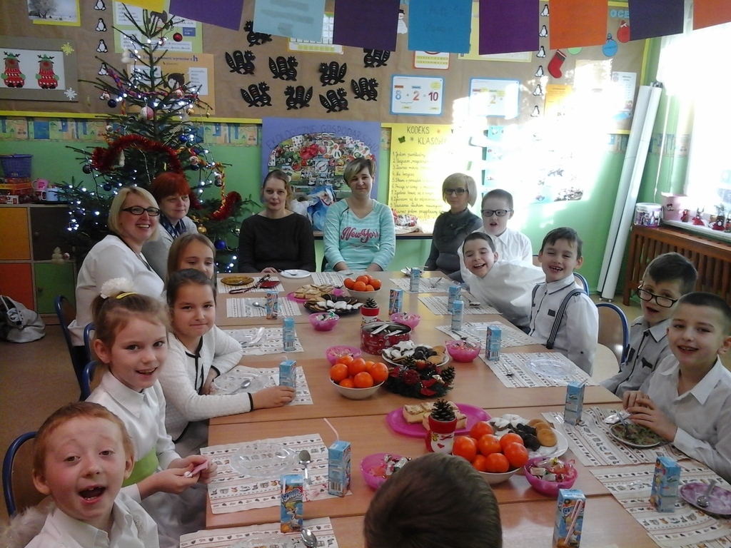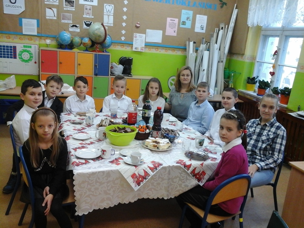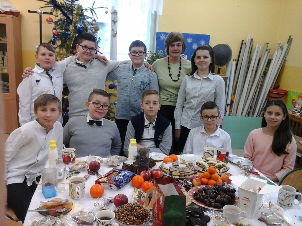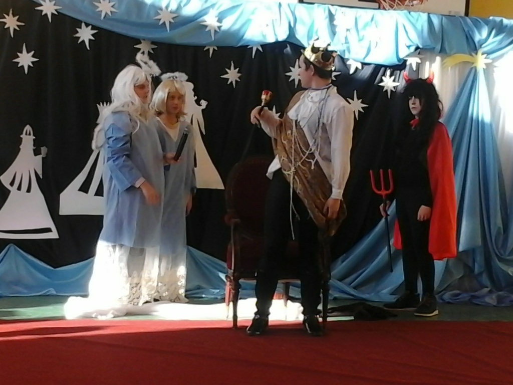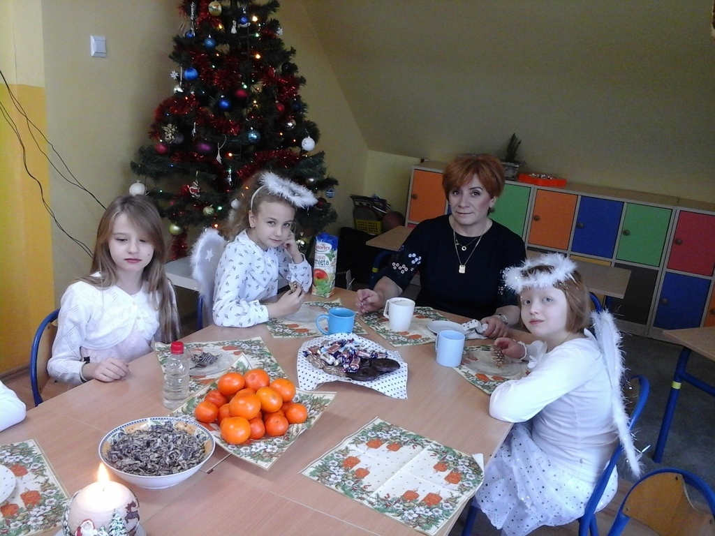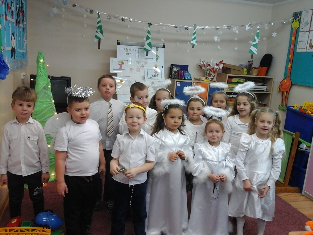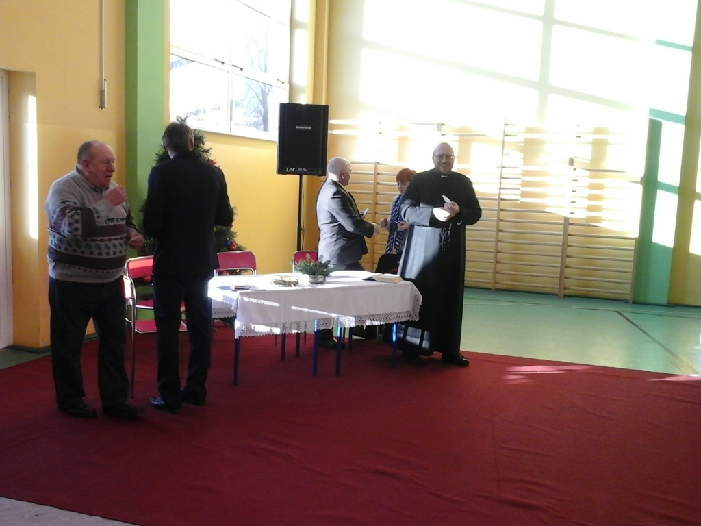 22 grudnia w naszej szkole panował świąteczny nastrój. Dominował w tym dniu kolor biały, gdyż nasze dzieci przebrane były za aniołki. O godz. 10.00 wraz z naszymi zaproszonymi gośćmi zebraliśmy się na sali gimnastycznej, aby obejrzeć część artystyczną w wykonaniu naszych dzieci i rodziców. Gościliśmy w tym dniu ks. Proboszcza Macieja Krulaka, który rozpoczął naszą uroczystość przeczytaniem fragmentu z Pisma św. mówiącego o narodzeniu się Pana Jezusa. Gościliśmy również radnych pana Wojciecha Dykcika oraz Leszka Chojnickiego i sołtysa wsi Pogorzałki Wielkie pana Leszka Wawrzyniaka. Po wysłuchaniu przepięknych kolęd i pastorałek przyszedł czas na Herody, czyli ludowe przedstawienie bożonarodzeniowe, które wykonali rodzice należący do grupy teatralnej działającej w szkole oraz dzieci. Po krótkiej przerwie w oddali usłyszano zbliżający się śpiew. Jak się okazało byli to przezabawni Zapustnicy, którym przygrywał na akordeonie p. Eugeniusz Drukarczyk.