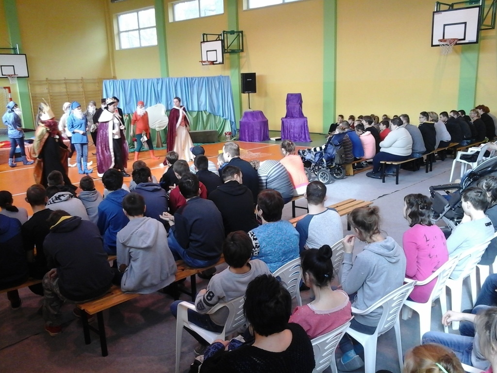 W środę 1 marca zaprosiliśmy do nas naszych sąsiadów ze Specjalnego Ośrodka Szkolno-Wychowawczego im.Janusza Korczaka, aby dzieci obejrzały inscenizację przygotowaną przez grupę teatralną rodziców „Aktorzyny”. Występ bardzo się podobał, czego dowodem były uśmiechy na twarzach wszystkich dzieci.