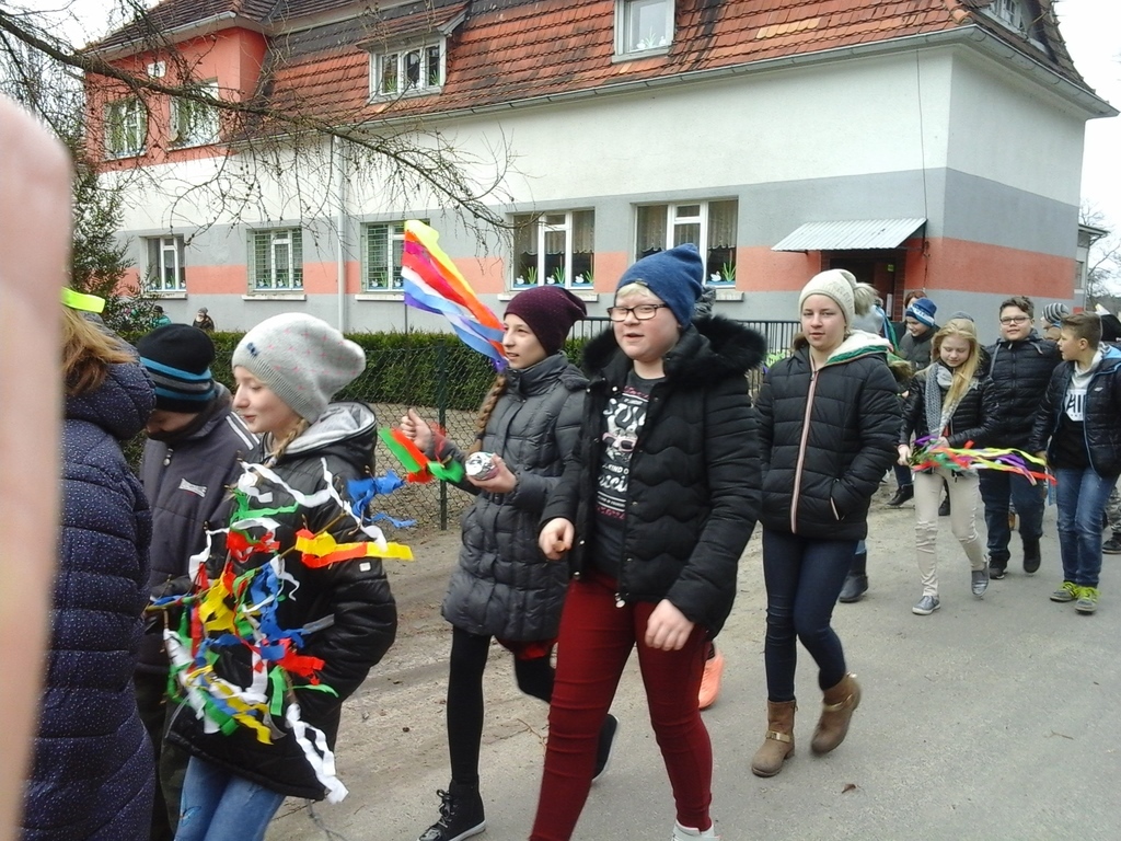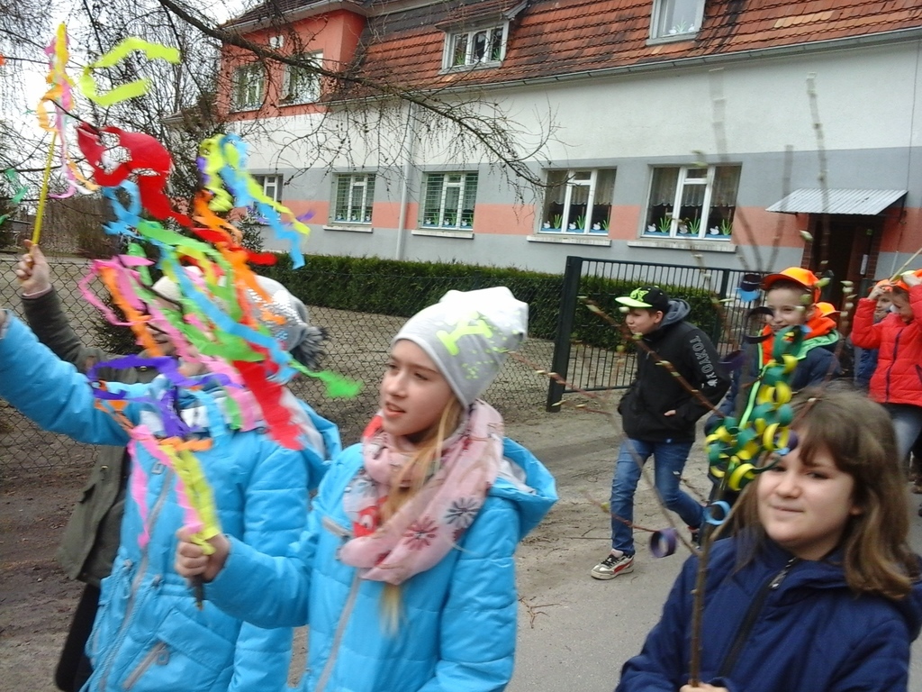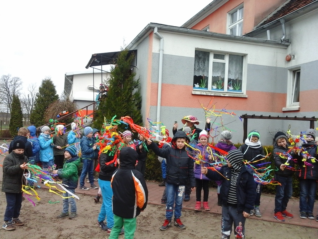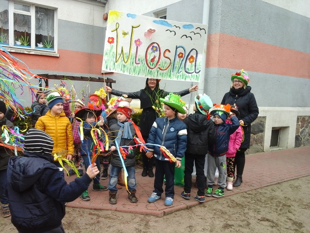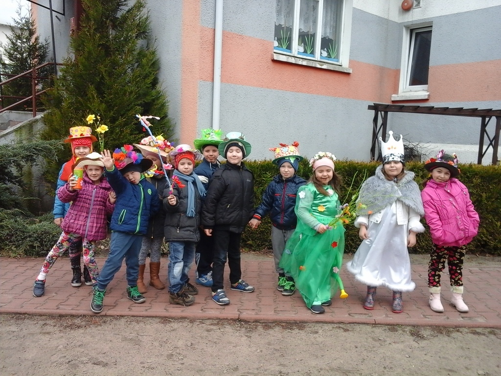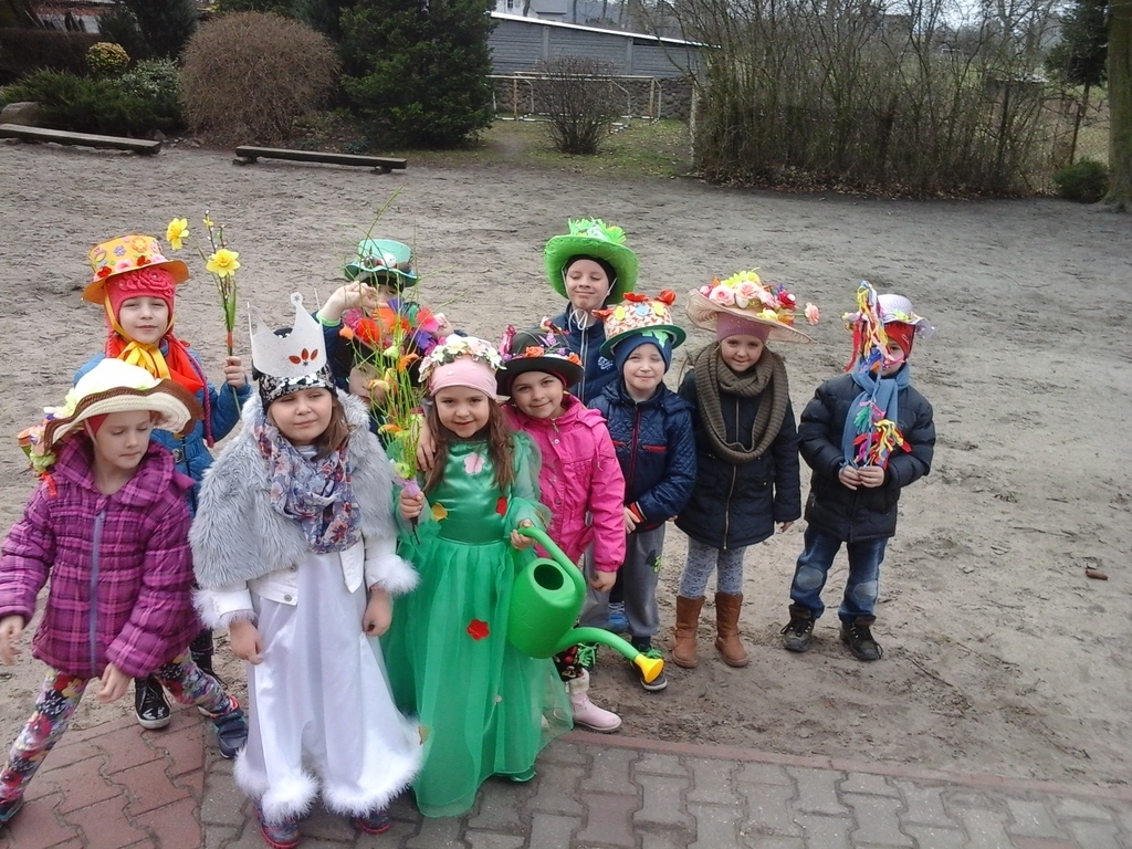 W pierwszy dzień kalendarzowej wiosny, wszyscy kolorowo ubrani w przepiękne kapelusze oraz z gaikami w dłoni wyruszyliśmy na jej powitanie. Oczywiście w naszym korowodzie towarzyszyła nam ustępująca już zima ale obok niej pewnym krokiem kroczyła już przepiękna wiosna.