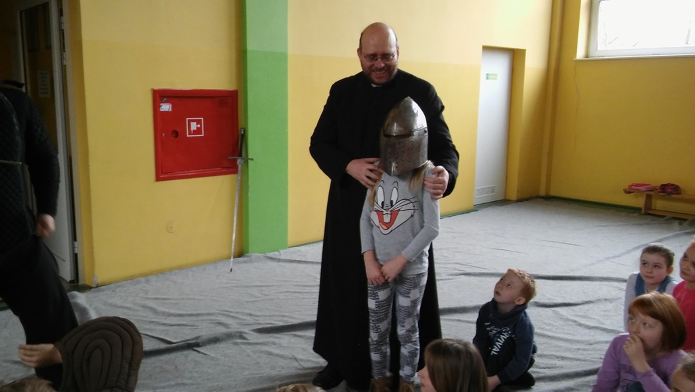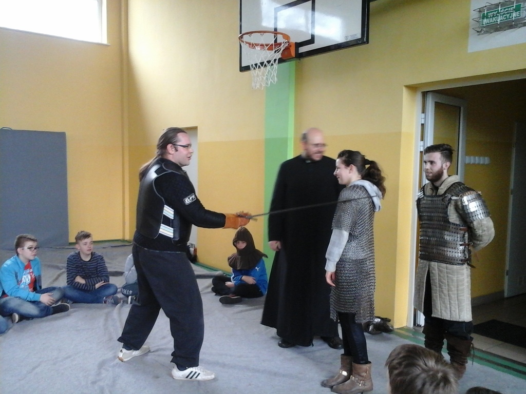 W dniach 22-24 marca przeżywaliśmy duchową odnowę podczas rekolekcji wielkopostnych. W tym czasie odwiedzili nas rycerze, uświadamiając nam, że chrześcijanin dysponuje w walce ze złem potężnym orężem - modlitwą. Mistrz Kornel oraz jego uczeń Robert, zaprezentowali nam zbroję. Chrześcijanie, tak jak rycerze powinni mieć tarczę - wiarę, by odpierać pocisk i- pokusy, hełm - by chronił myśli, buty - by być zawsze gotowym do drogi z Chrystusem, tak jak rycerze powinni też przestrzegać kodeksu - Pisma Świętego.