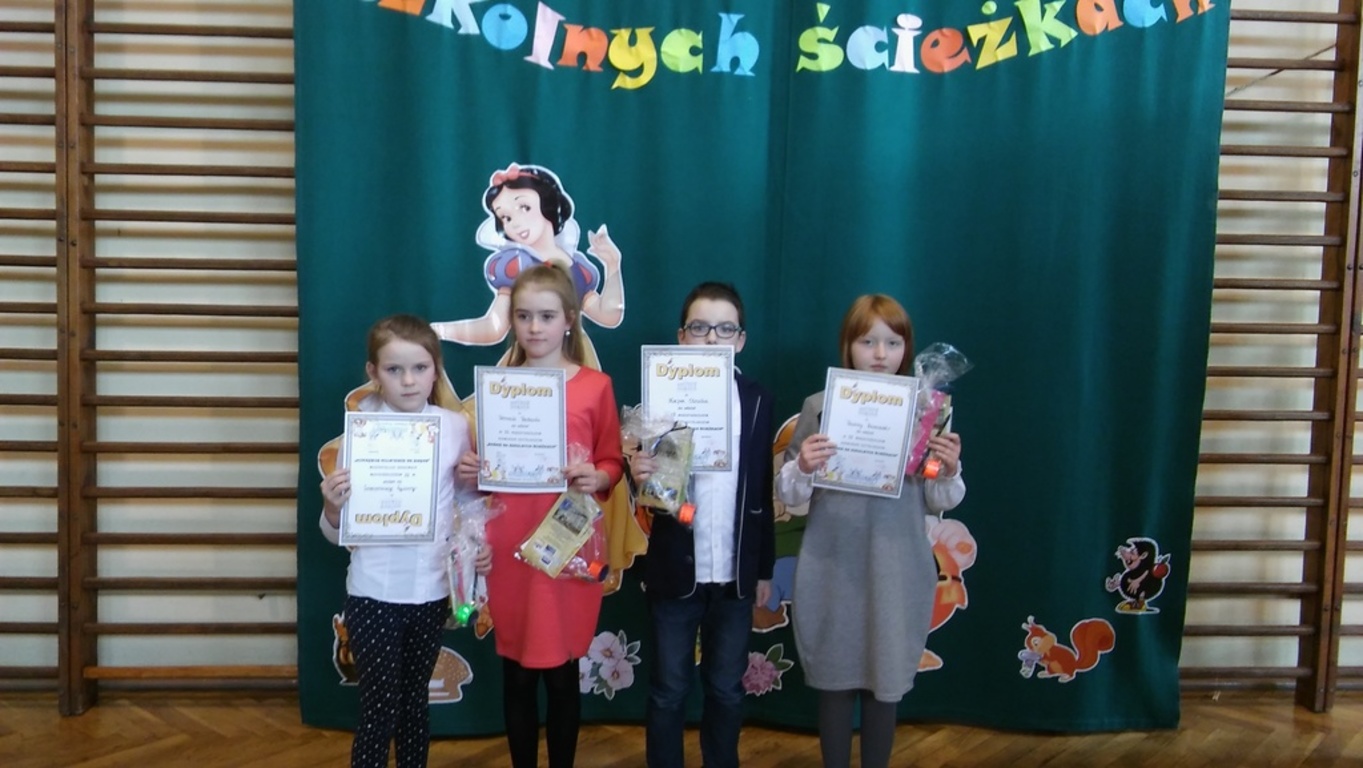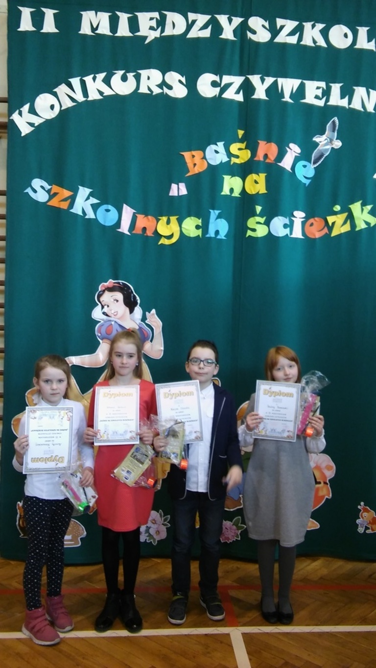 29 marca 2017 roku odbył się konkurs czytelniczy„Baśnie na szkolnych ścieżkach” dla klas II i III w Szkole Podstawowej nr 1 im. Strajku Dzieci Koźmińskich 1906/1907 w Koźminie Wlkp. Konkurs cieszył się bardzo dużym zainteresowaniem, gdyż z każdej szkoły naszej gminy przybyło po kilkoro uczniów. Naszą szkołę reprezentowali: Paulina Biszczak, Weronika Pachurka, Marietta Kosmalska oraz Kacper Olender. Konkurs do łatwych nie należał, gdyż uczestnicy musieli wykazać się znajomością treści kilku baśni różnych autorów, co było podstawą do wzięcia udziału w zmaganiach konkursowych.Mimo, iż nie stanęli na podium, jesteśmy z nich bardzo dumni; nasi uczniowie byli doskonale przygotowani i zasługują na pochwałę.