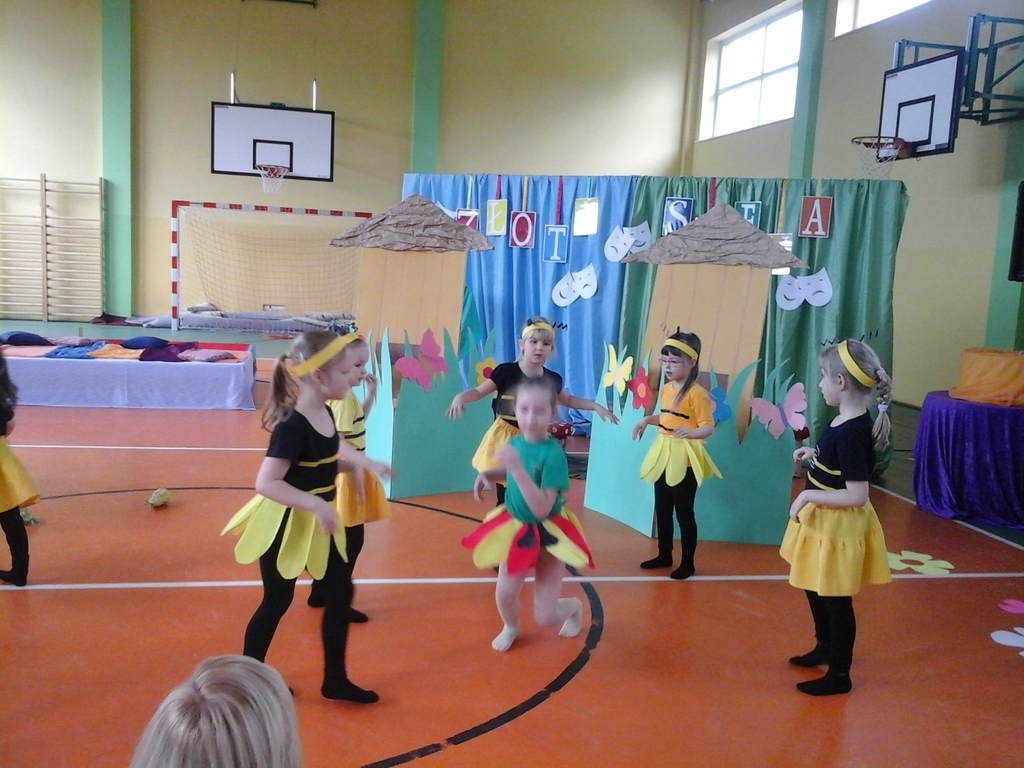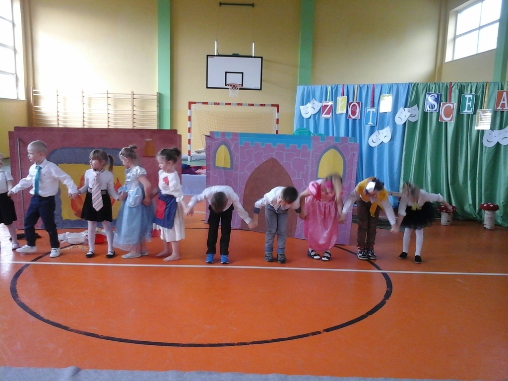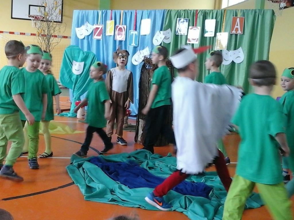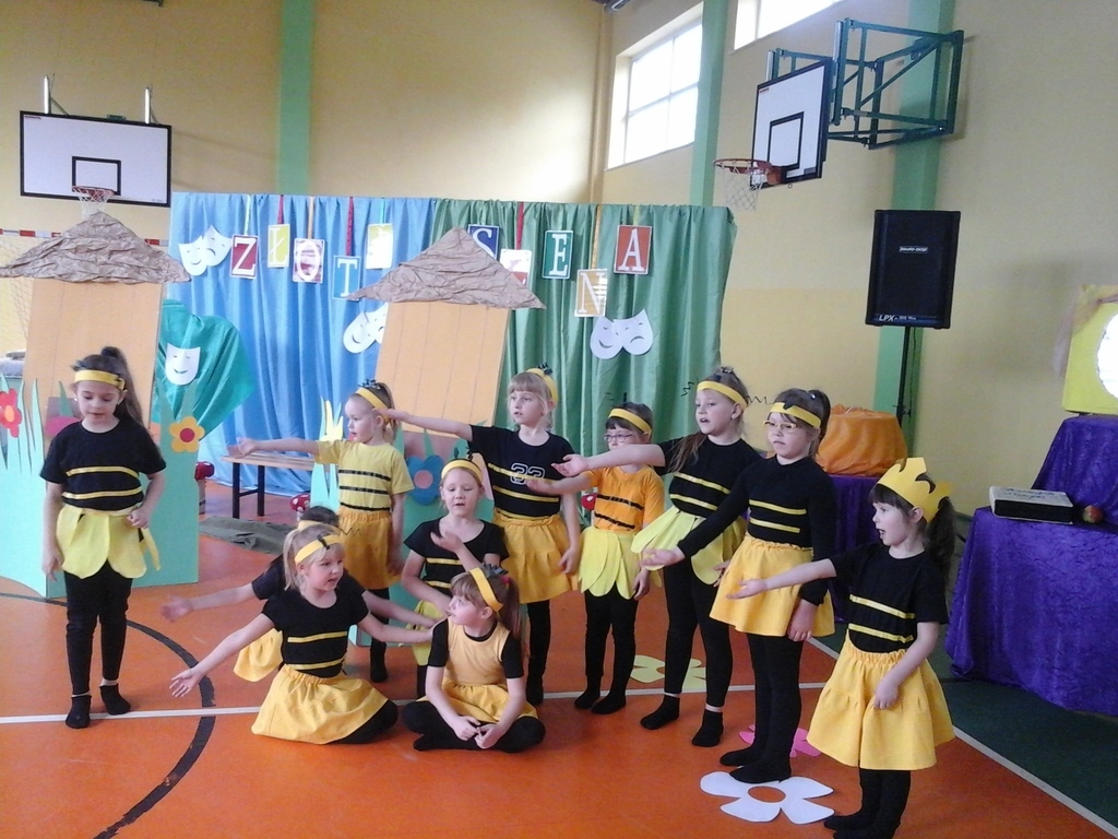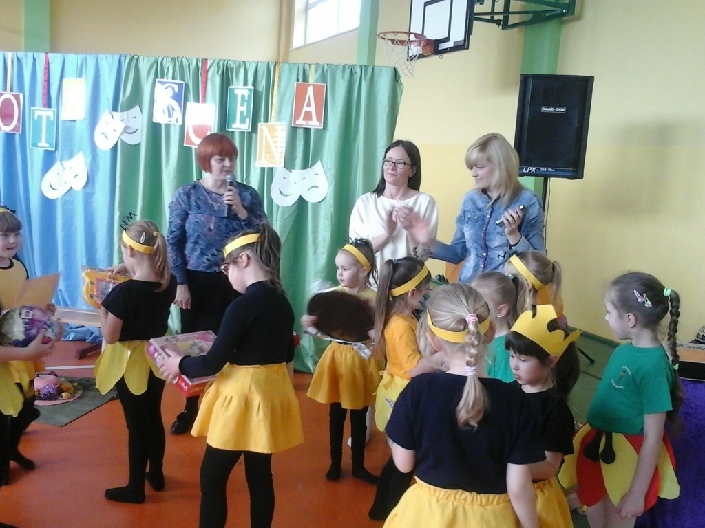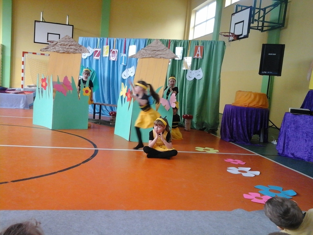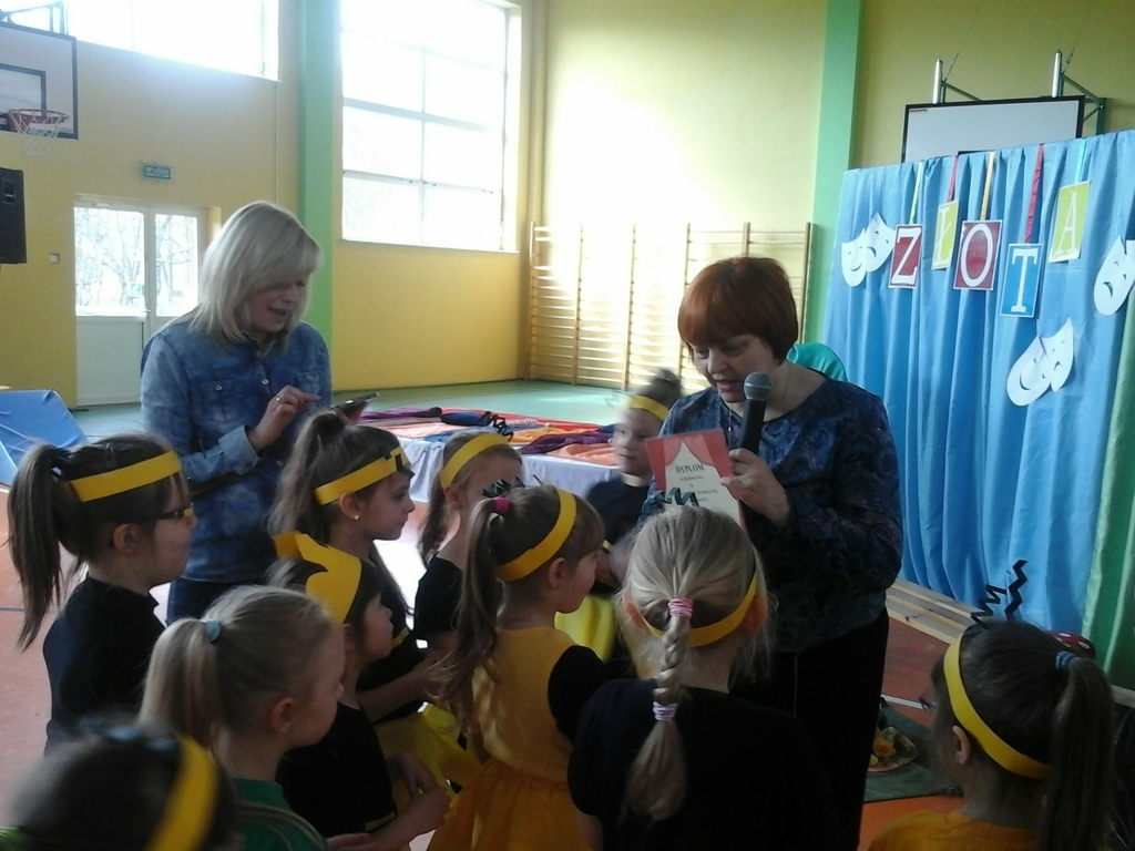 30 marca odbył się w Naszym Zespole I Przegląd Teatralny „ZŁOTA SCENA", który został opficjalnie otwarty przez panią Dyrektor Irenę Konarczak-Bojanek. Głównym celem naszej zabawy w teatr była prezentacja umiejętności artystycznych amatorskich teatrów dziecięcych oraz wymiana doświadczeń w pracy artystycznej i wychowawczej. Na naszej złotej scenie pojawiły się trzy zespoły teatralne. Pierwszym z nich była grupa „Misiaki” z przedszkola z Borzęcic z utworem pt.: „Bajka o Kopciuszku brudasku”, która została przygotowana przez panią Paulinę Drukarczyk. Kolejny występ zaprezentowała grupa „Leśne Ludki” z przedszkola w Mokronosie. Była to wspólna praca pań: Doroty Staniewskiej, Marioli Górak oraz Renaty Kosmalskiej. Trzecim zespołem były „Wesołe Skrzaty” z przedszkola z Koźmina Wlkp., które wystąpiły z inscenizacją pt.: „Kłopoty pszczółki Uli” przygotowaną przez panie Katarzynę Olender i Monikę Ziętkiewicz.