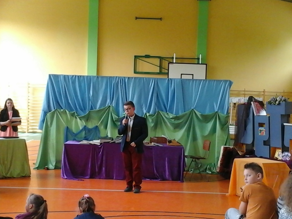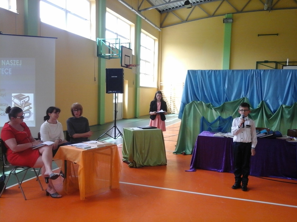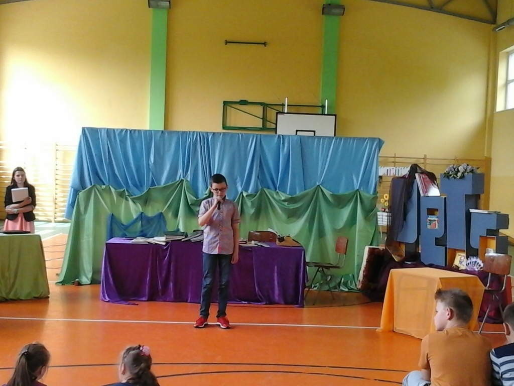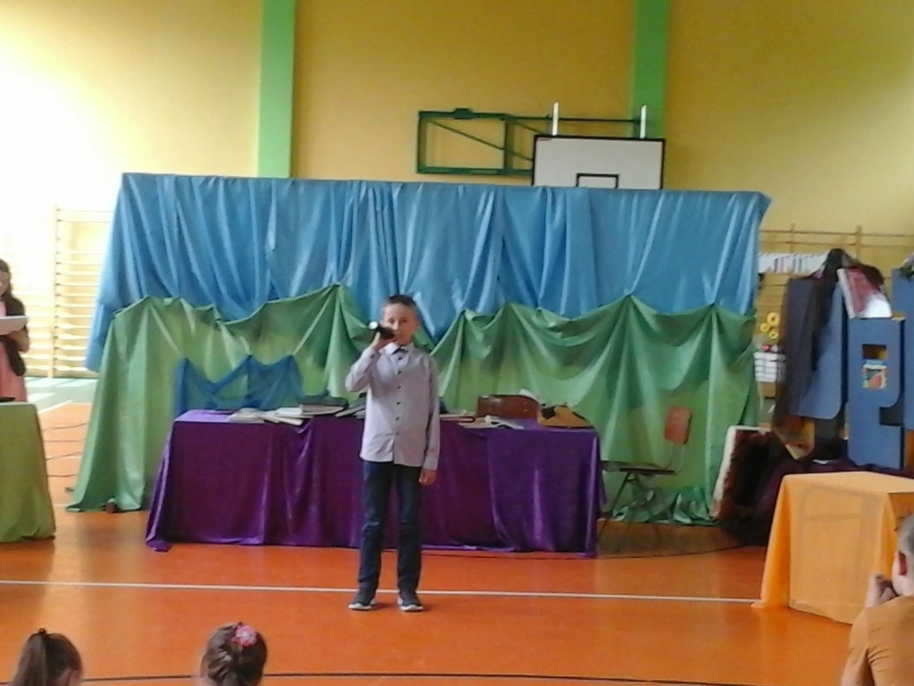 16 maja świętowaliśmy w naszym Zespole SZKOLNY DZIEŃ KSIĄŻKI I BIBLIOTEKI. Pierwszym punktem naszego spotkania był występ grupy teatralnej rodziców, którzy przygotowali inscenizację o książce i bibliotece. Następnie odbył się Szkolny Konkurs Recytatorski poświęcony twórczości Naszej Patronki Marii Konopnickiej. Do jury zaproszono Panią Justynę Kląskała- bibliotekarkę z Biblioteki Publicznej Miasta i Gminy Koźmin Wlkp., Panią Barbarę Opielewicz bibliotekarkę ze Specjalnego Ośrodka Szkolno-Wychowawczego im. Janusza Korczaka w Borzęciczkach oraz Panią Danutę Krzeszewską przedstawicielkę Rady Rodziców naszego Zespołu. W czasie obrad jury dzieci miały możliwość obejrzenia prezentacji multimedialnej o naszej bibliotece , którą przygotowali uczniowie klasy VI.