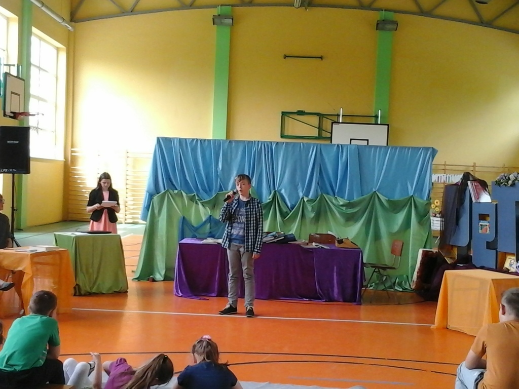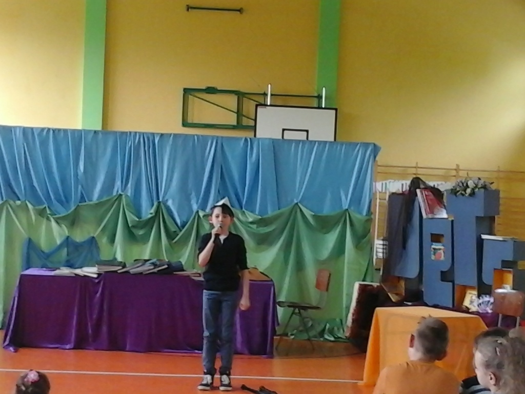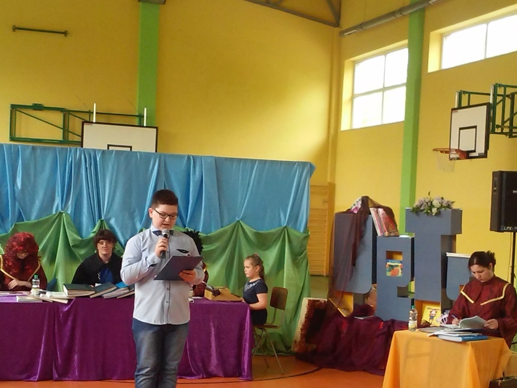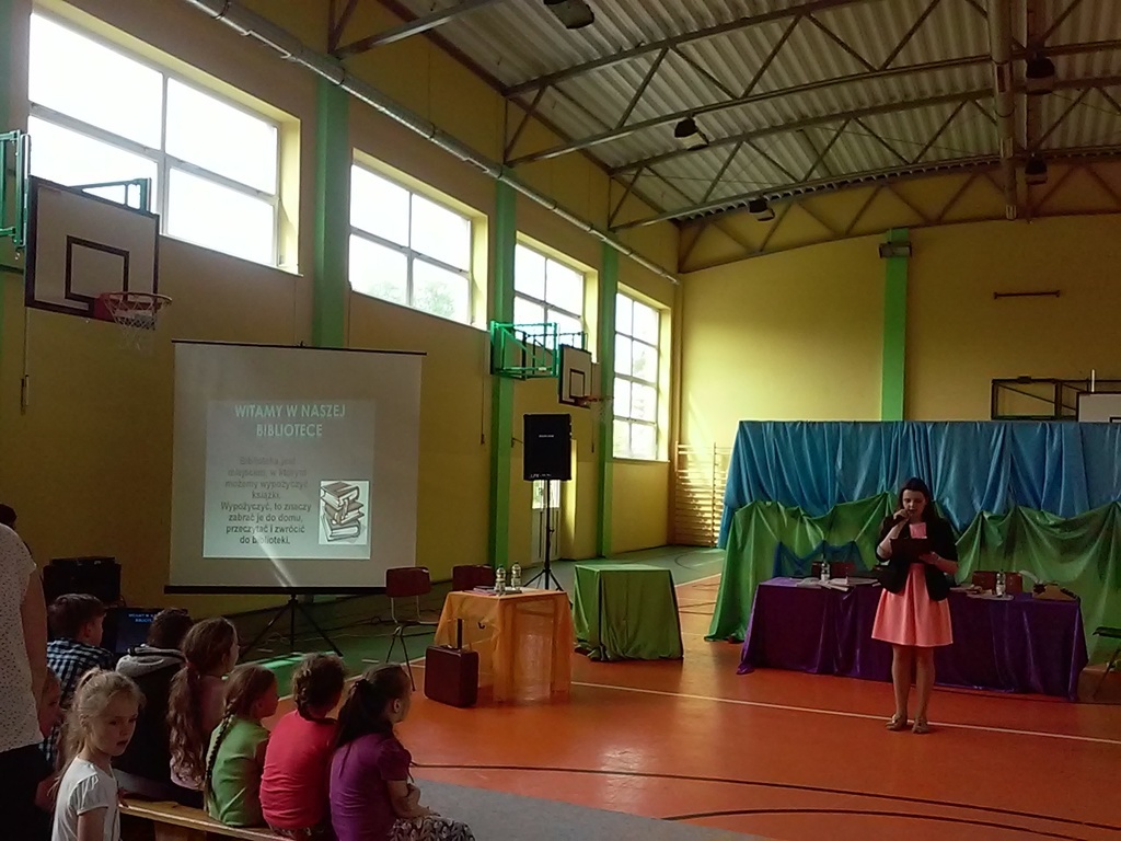 16 maja świętowaliśmy w naszym Zespole SZKOLNY DZIEŃ KSIĄŻKI I BIBLIOTEKI. Pierwszym punktem naszego spotkania był występ grupy teatralnej rodziców, którzy przygotowali inscenizację o książce i bibliotece. Następnie odbył się Szkolny Konkurs Recytatorski poświęcony twórczości Naszej Patronki Marii Konopnickiej. Do jury zaproszono Panią Justynę Kląskała- bibliotekarkę z Biblioteki Publicznej Miasta i Gminy Koźmin Wlkp., Panią Barbarę Opielewicz bibliotekarkę ze Specjalnego Ośrodka Szkolno-Wychowawczego im. Janusza Korczaka w Borzęciczkach oraz Panią Danutę Krzeszewską przedstawicielkę Rady Rodziców naszego Zespołu. W czasie obrad jury dzieci miały możliwość obejrzenia prezentacji multimedialnej o naszej bibliotece , którą przygotowali uczniowie klasy VI.