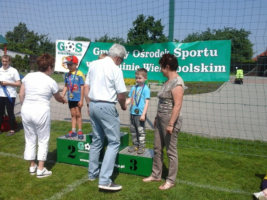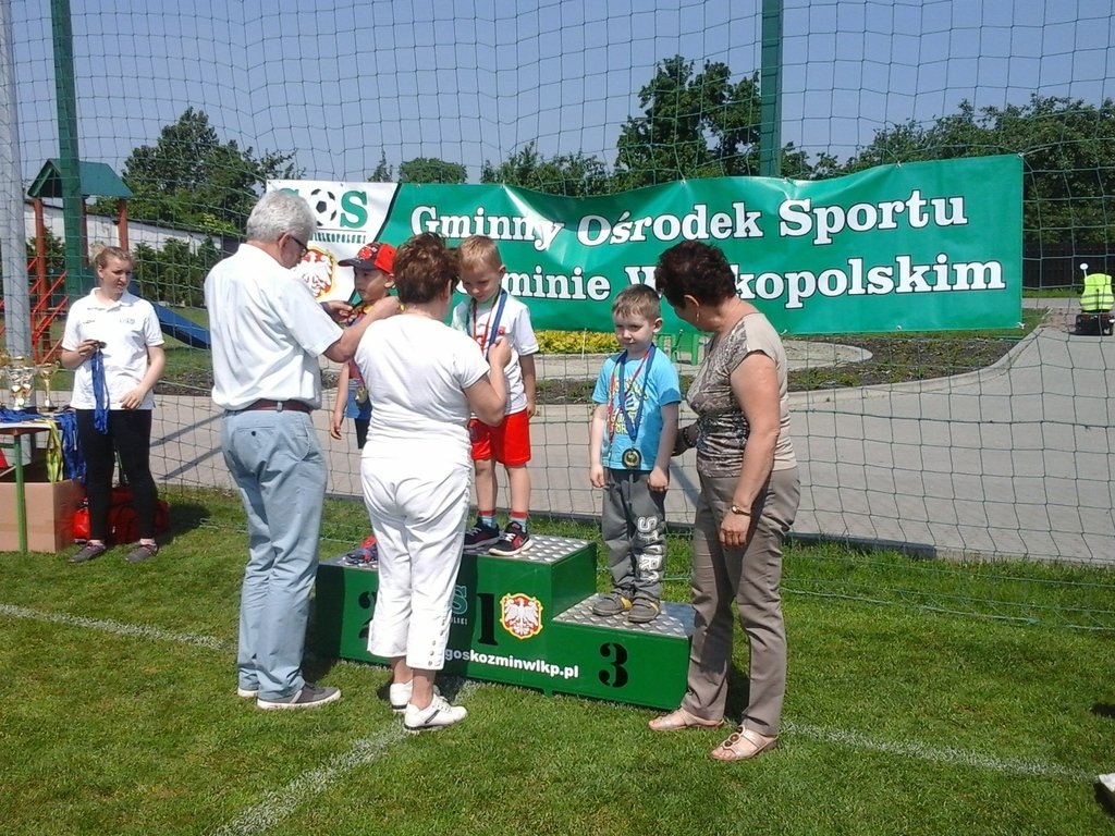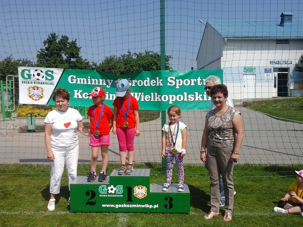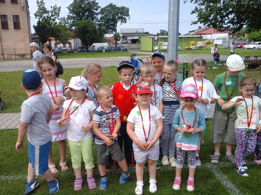 Dnia 29 maja br. po raz kolejny odbyła się Olimpiada Przedszkolaków, była to już piąta Olimpiada i jak co roku cieszyła sie wielkim zainteresowaniem. Nasze pociechy z przedszkola jak i z grupy "0" mogą się pochwalić sukcesami oraz zdobyciem zaszczytnych miejsc na podium. W najmłodszej grupie medale zdobyli następujące dzieci: Marcelina Michalak w rzucie do "studni" zdobyła złoty medal, zdobycie miejsca na podium przez Marysię Kasprzak stało się już tradycją, otrzymała ona brązowy medal w biegu, Wojciech Pawlak był najlepszym zawodnikiem w biegu wśród najmłodszych uczestników, kolejny medal brązowy otrzymał Szymon Ciepły w biegu w kategorii 5-cio latków chłopców, srebrny medal otrzymała Natalia Golka. Organizatorzy przygotowali również niespodziankę dla pracowników- był to bieg, w którym również możemy pochwalić się srebrnym medalem, a mianowicie zdobyła go Pani Sylwia Szyszka. Na zakończenie Dyrektorzy otrzymali puchary za udział w V Olimpiadzie Przedszkolaków. Gratulujemy wszystkim uczestnikom i życzymy dalszych sukcesów.
