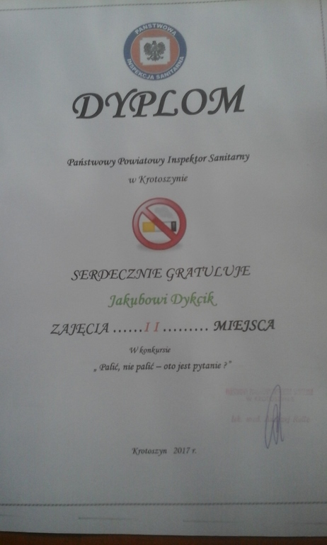 Z naszej szkoły II miejsce zajął JAKUB DYKCIK (opiekun mgr Izabela Wojciechowska)