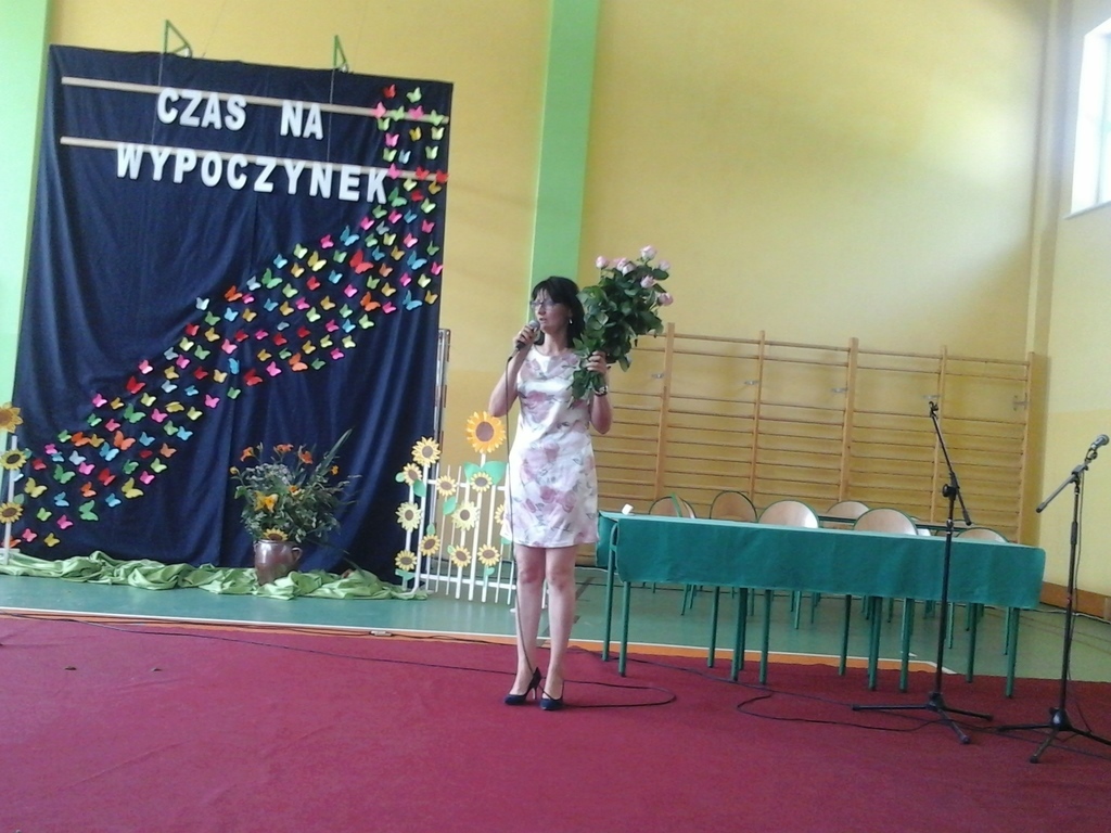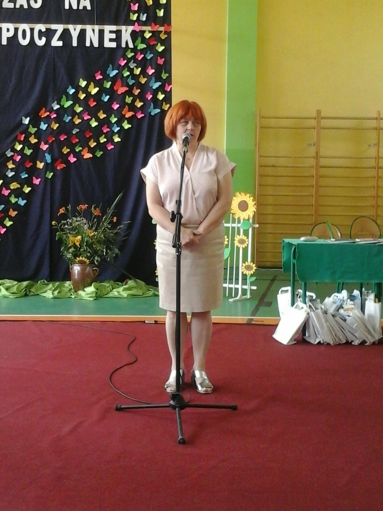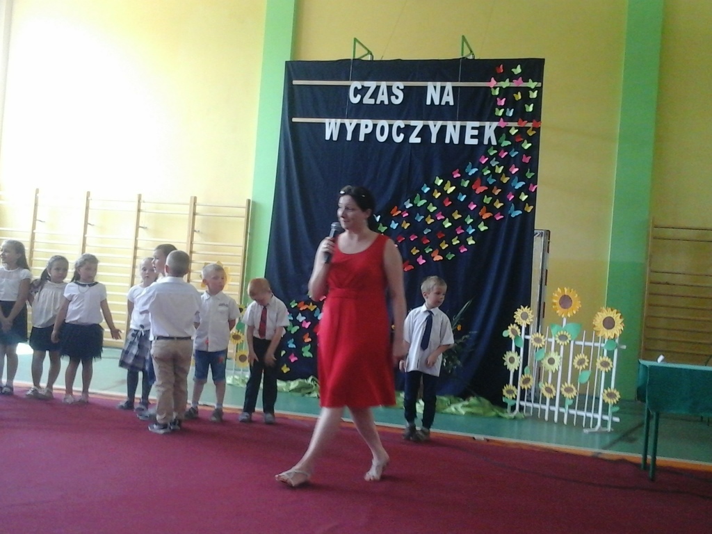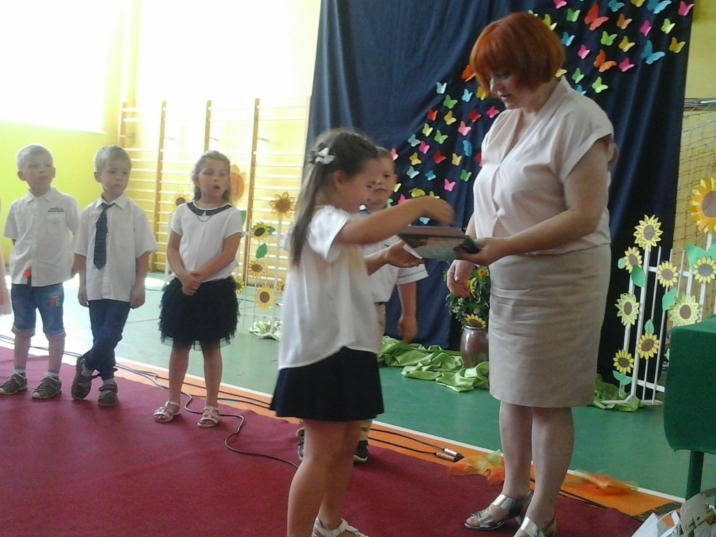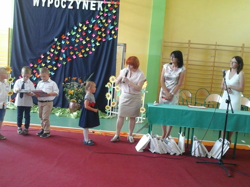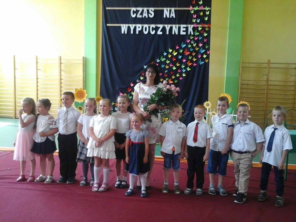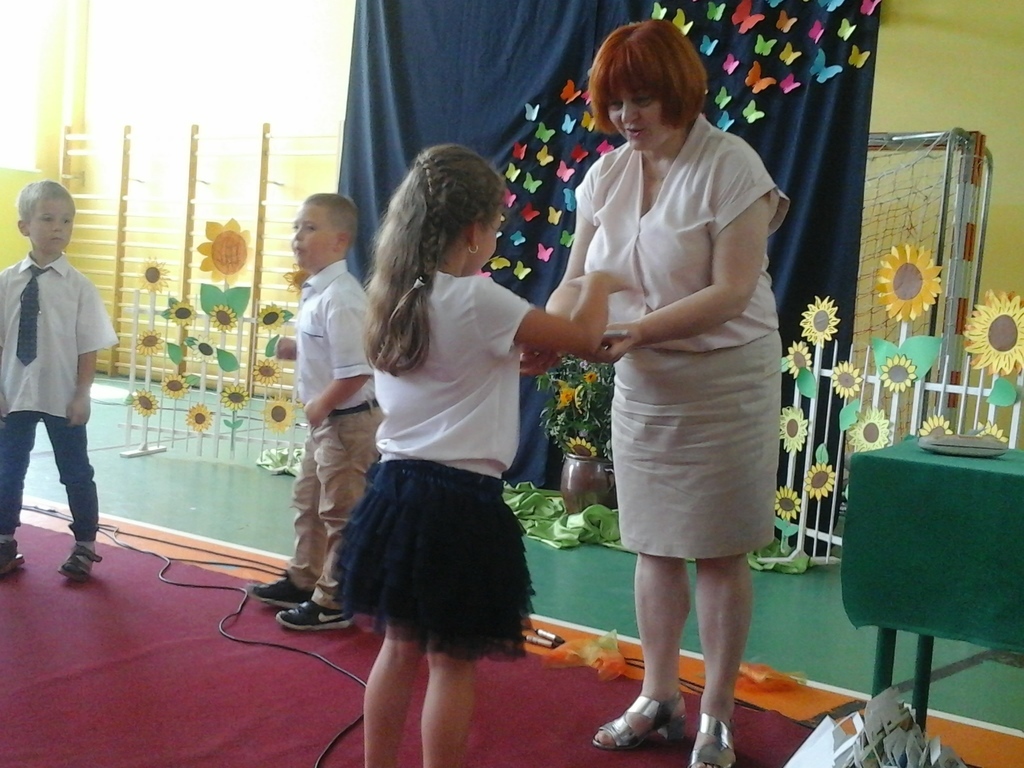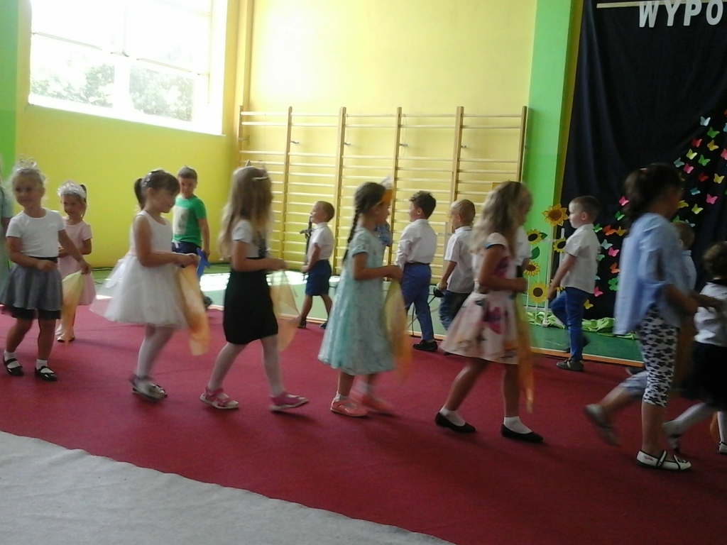 Przedszkolaki wierszykiem i piosenką podziękowały za cały rok w przedszkolu. Dzieci młodsze pożegnały się ze swoimi starszymi kolegami i koleżankami, którzy w nowym roku szkolnym rozpoczną już naukę w klasie pierwszej. Wszystkie dzieci otrzymały pamiątkowe dyplomy oraz zostały nagrodzone za udział w akcjach zbierania nakrętek, baterii oraz kasztanów.