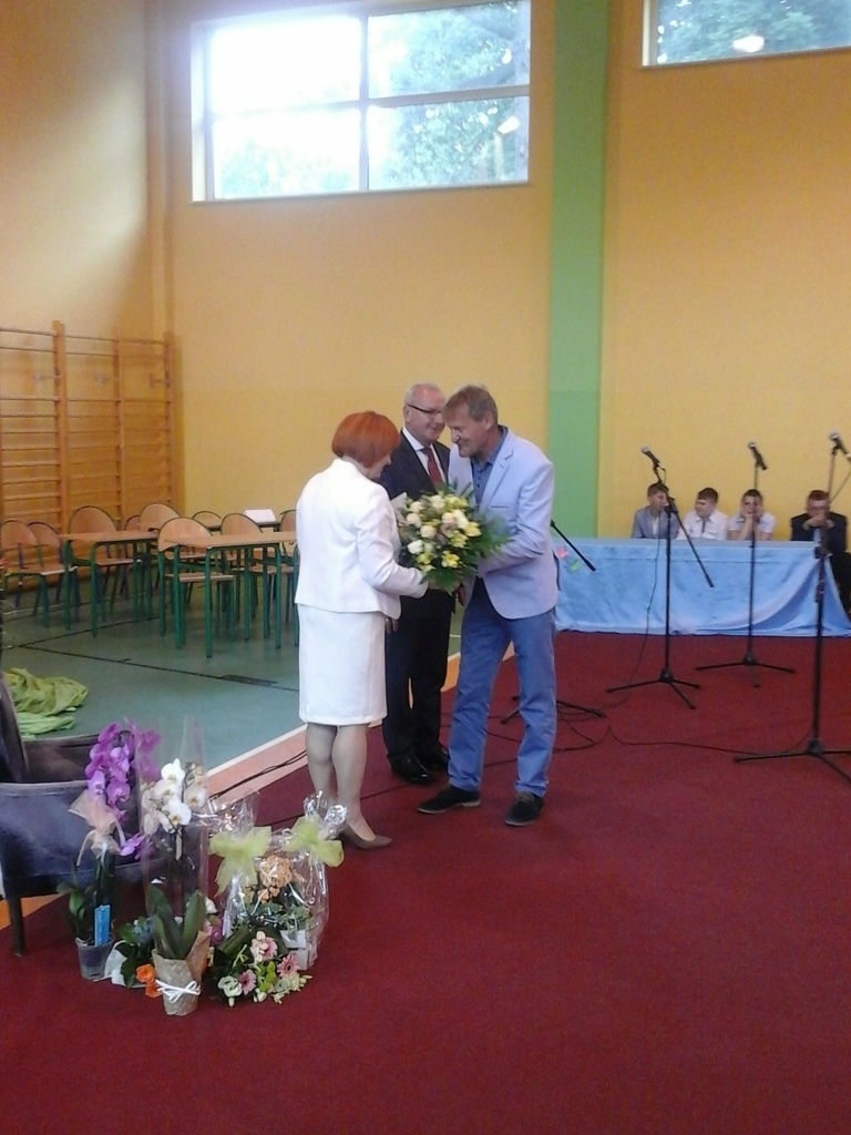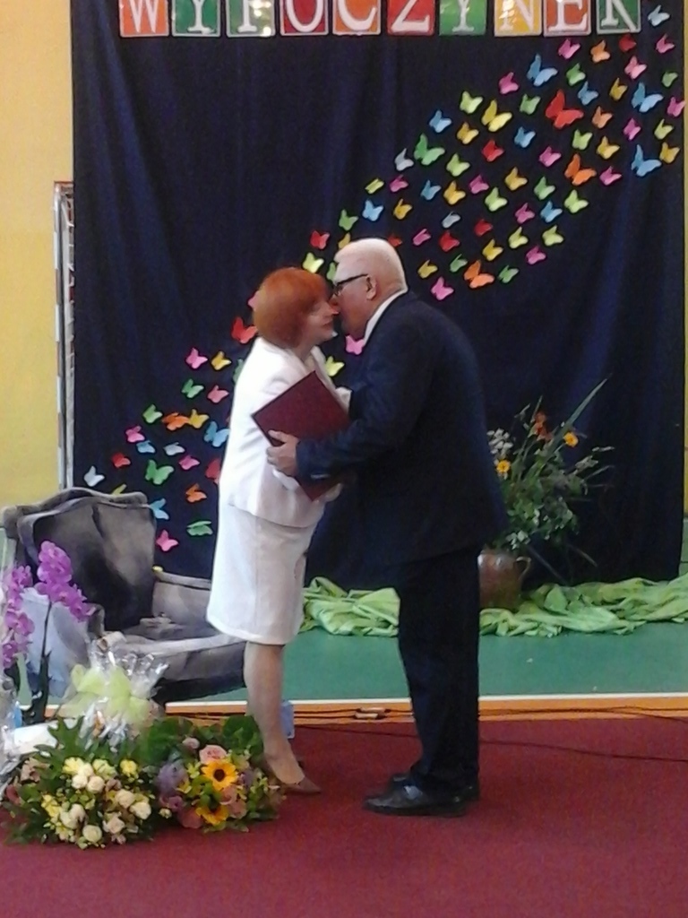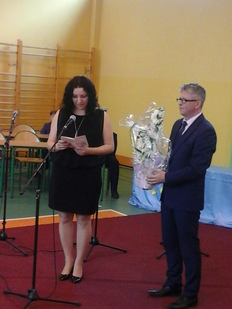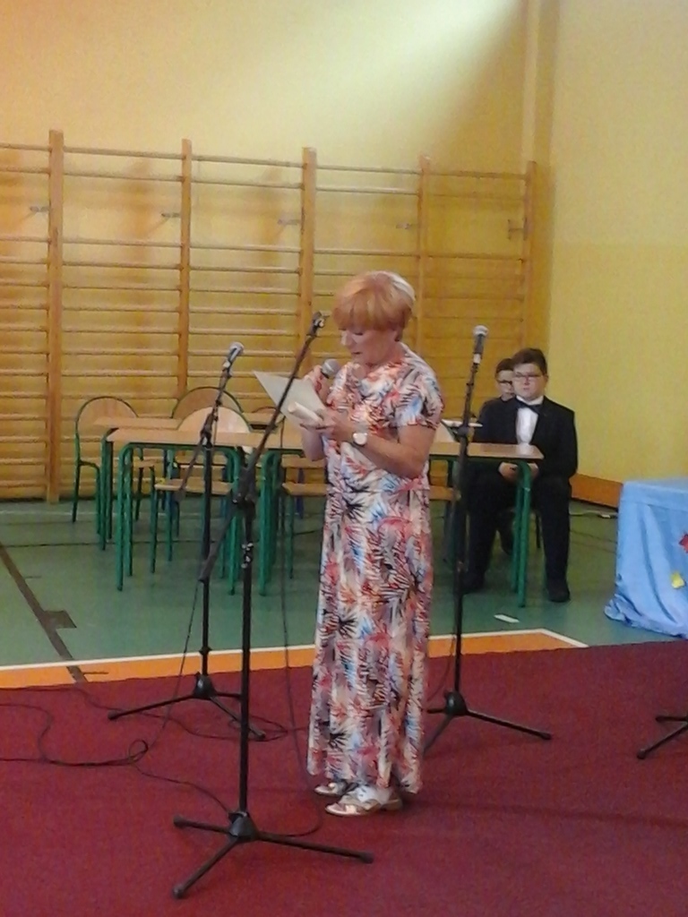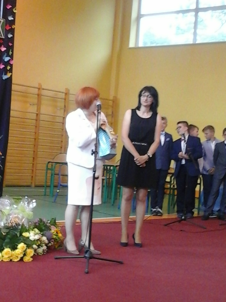 W dniu zakończenia Roku Szkolnego wszyscy wyraziliśmy naszą wdzięczność osobie, która przez wiele lat swojej nauczycielskiej pracy zawsze służyła innym ludziom i szczytnym celom. To Nasza Pani dyrektor Irena Konarczak-Bojanek w tym roku szkolnym postanowiła zakończyć swoja przygodę ze szkołą. Podziękowaliśmy za uśmiech, dobre słowo, wyrozumiałość, za wiedzę, za każdy dzień spędzony z nami. Na uroczystości obecni byli Burmistrz Miasta i Gminy Koźmin Wlkp. Pan Maciej Bratborski, Ksiądz Proboszcz Maciej Krulak, radny Pan Wojciech Dykcik, dzieci z SOSW im.J.Korczaka w Borzęciczkach, przedstawiciele Rady Rodziców oraz absolwenci naszej szkoły, którzy ukończyli szkołę 45 lat temu. Na zakończenie z przedstawieniem o szkole wystąpiła grupa teatralna rodziców.