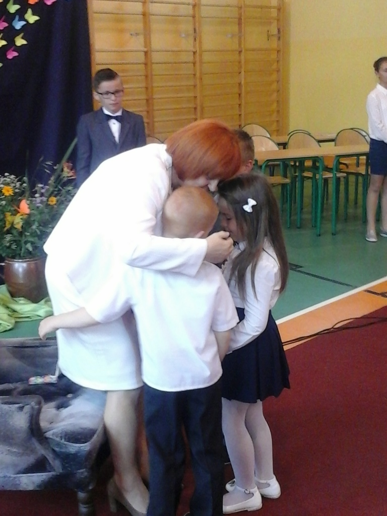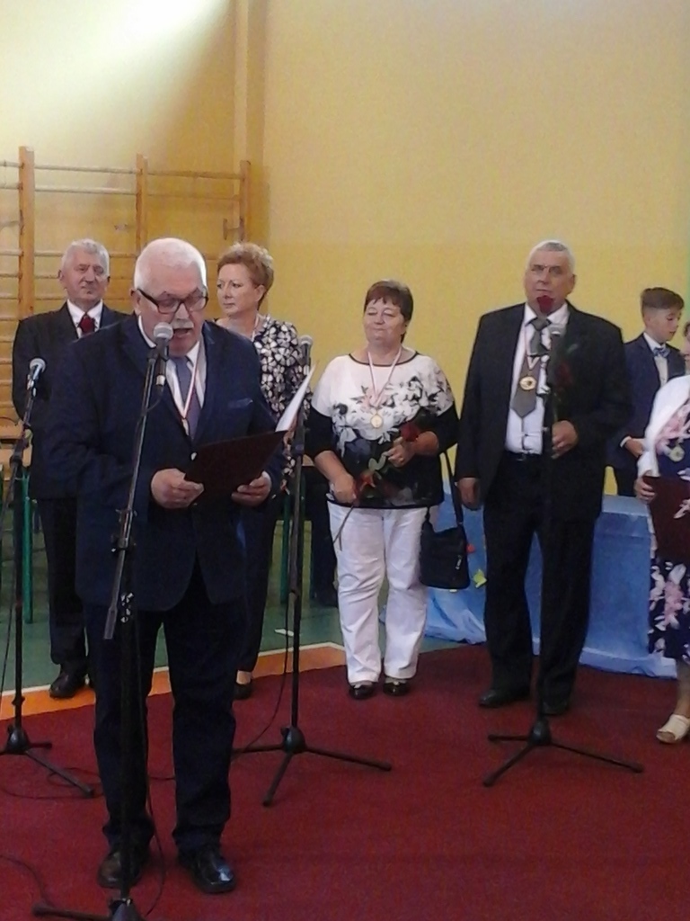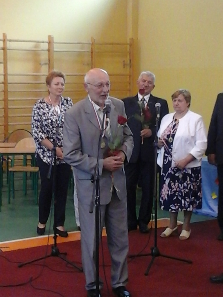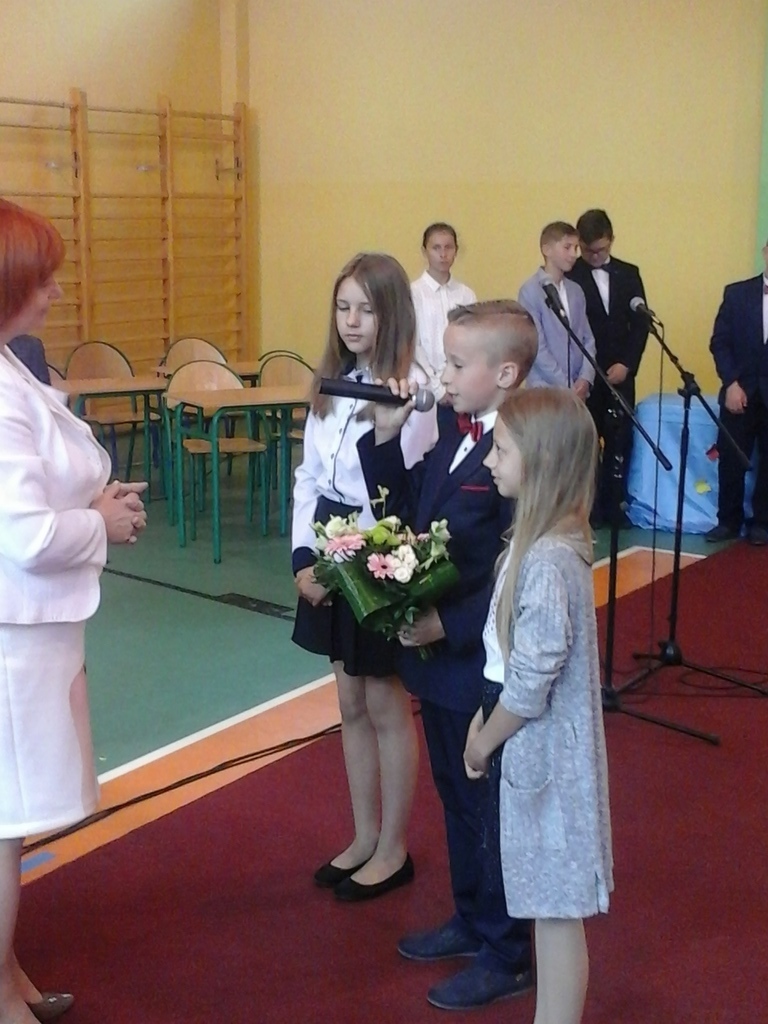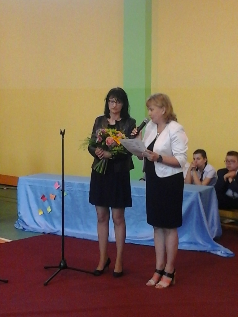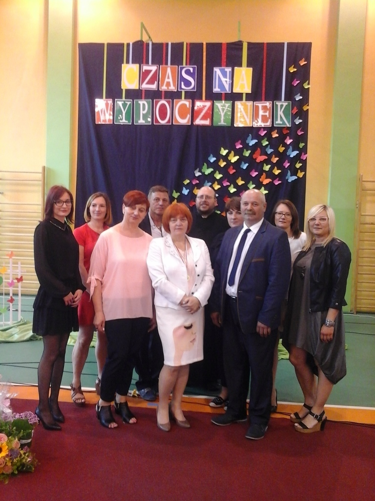 W dniu zakończenia Roku Szkolnego wszyscy wyraziliśmy naszą wdzięczność osobie, która przez wiele lat swojej nauczycielskiej pracy zawsze służyła innym ludziom i szczytnym celom. To Nasza Pani dyrektor Irena Konarczak-Bojanek w tym roku szkolnym postanowiła zakończyć swoja przygodę ze szkołą. Podziękowaliśmy za uśmiech, dobre słowo, wyrozumiałość, za wiedzę, za każdy dzień spędzony z nami. Na uroczystości obecni byli Burmistrz Miasta i Gminy Koźmin Wlkp. Pan Maciej Bratborski, Ksiądz Proboszcz Maciej Krulak, radny Pan Wojciech Dykcik, dzieci z SOSW im.J.Korczaka w Borzęciczkach, przedstawiciele Rady Rodziców oraz absolwenci naszej szkoły, którzy ukończyli szkołę 45 lat temu. Na zakończenie z przedstawieniem o szkole wystąpiła grupa teatralna rodziców.