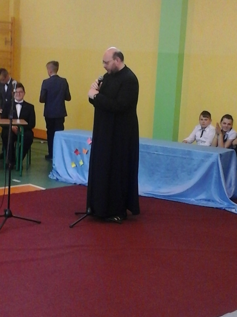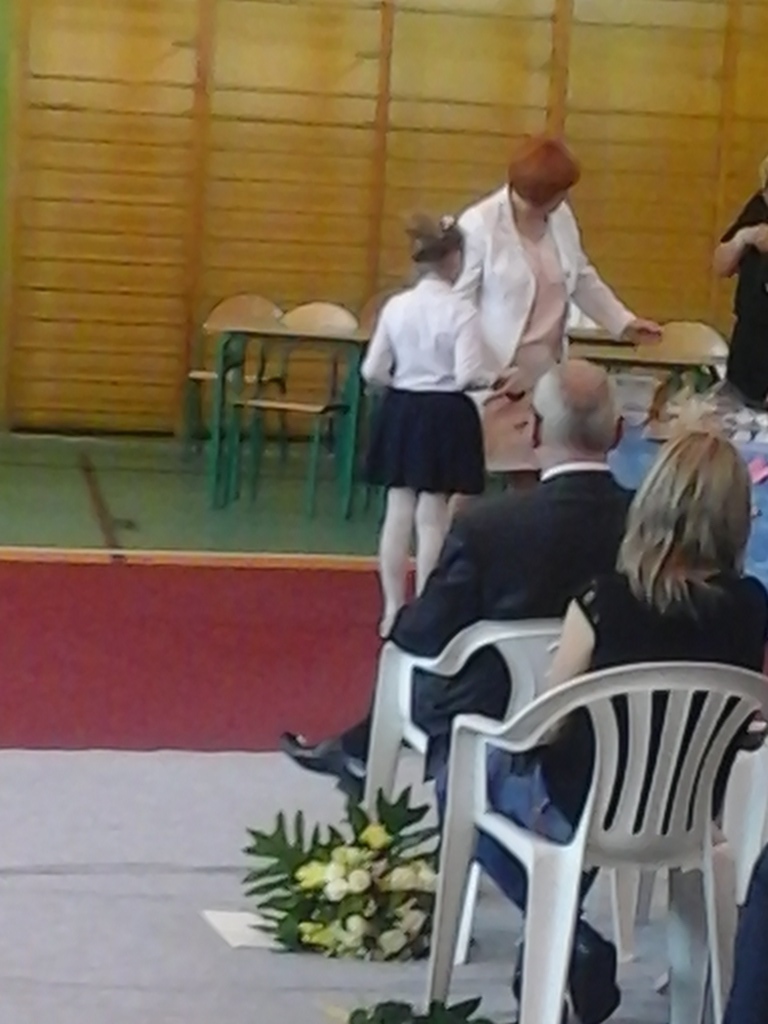 24 czerwca pożegnaliśmy Rok Szkolny 2016/2017. Po uroczystej Mszy św. zebraliśmy się na sali gimnastycznej. Po powitaniu wszystkich przybyłych gości nadszedł czas na część artystyczną. Następnie Pani dyrektor wręczyła uczniom świadectwa z wyróżnieniem.