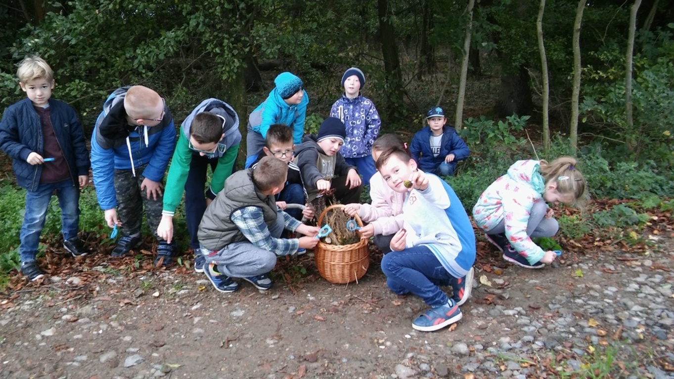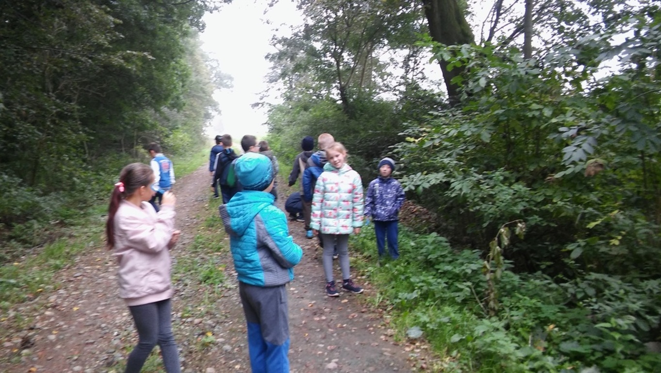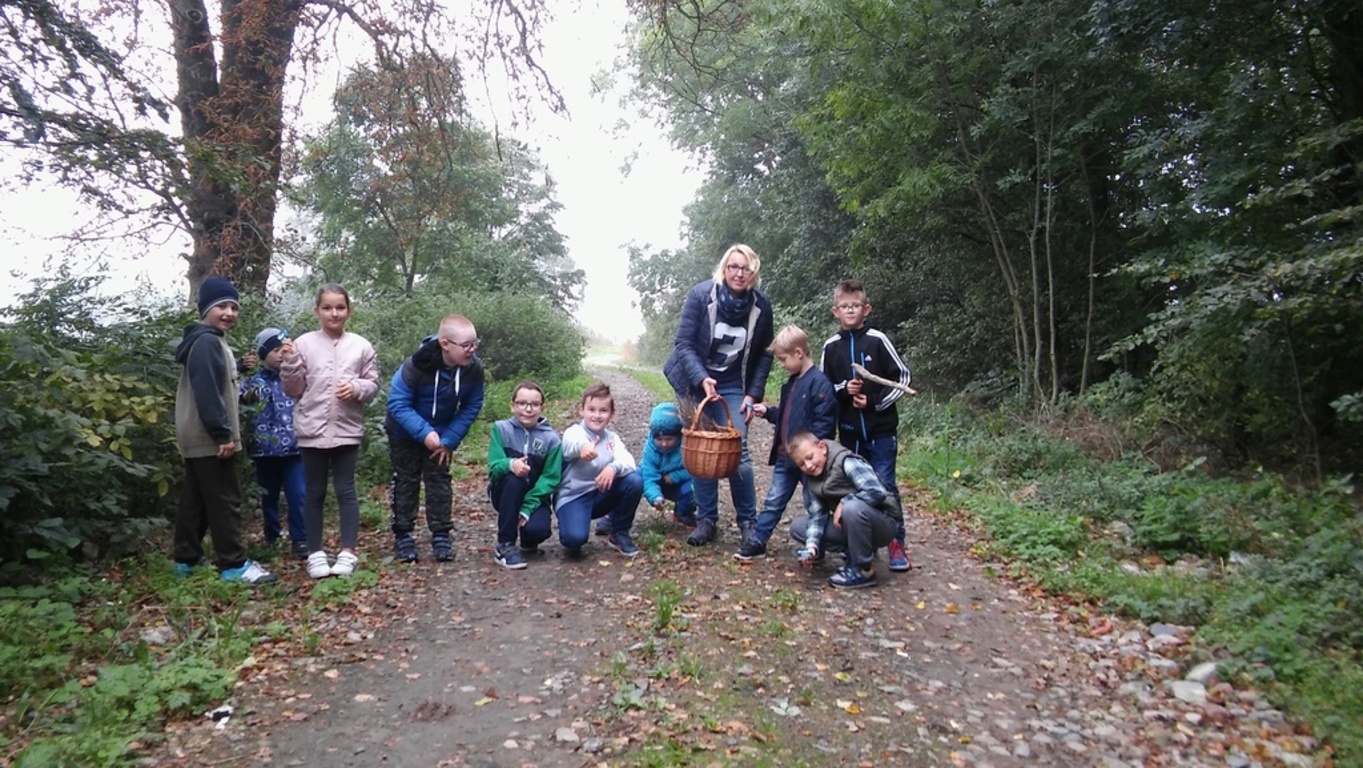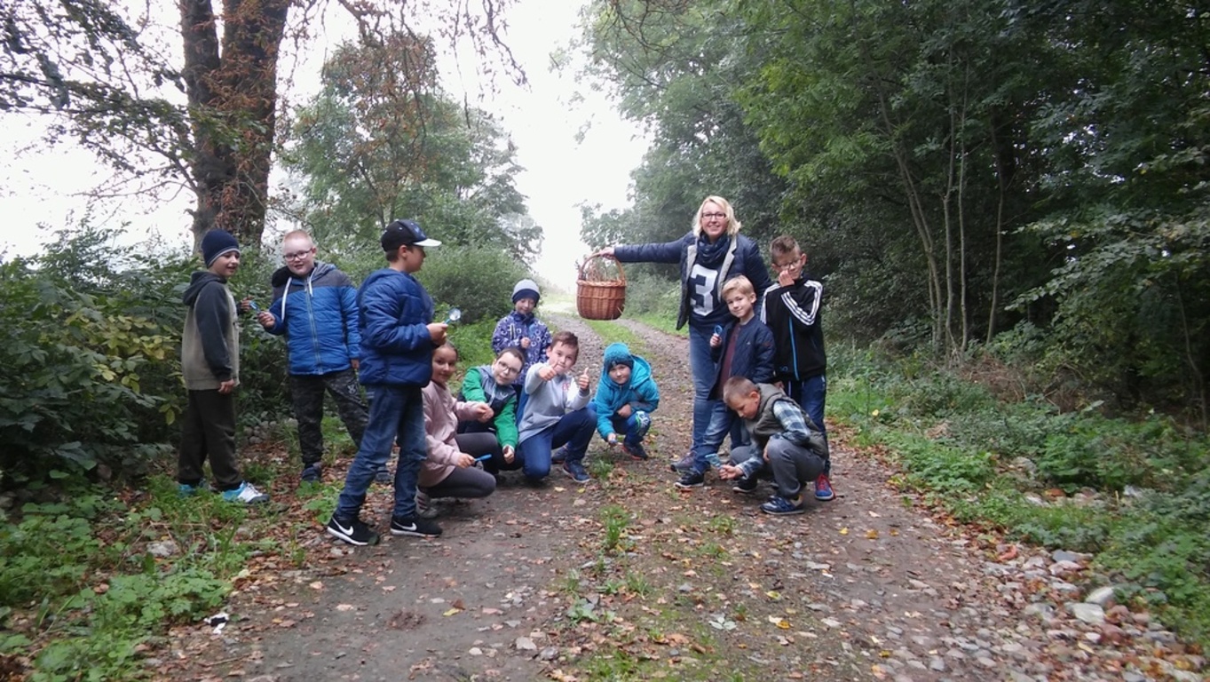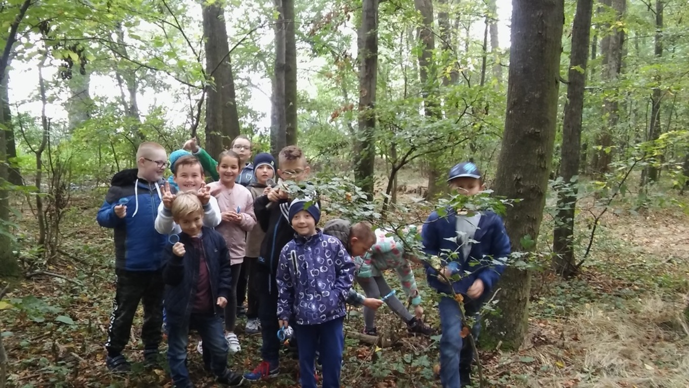 Uczniowie wraz z wychowawczynią wybrali się na wycieczkę do lasu, przechadzając się obserwowali naturalny ekosystem świata roślin i zwierząt. Poznawali przyrodę patrząc, słuchając i dotykając.