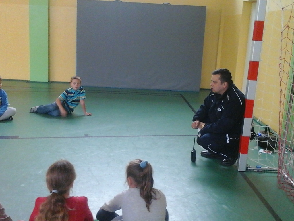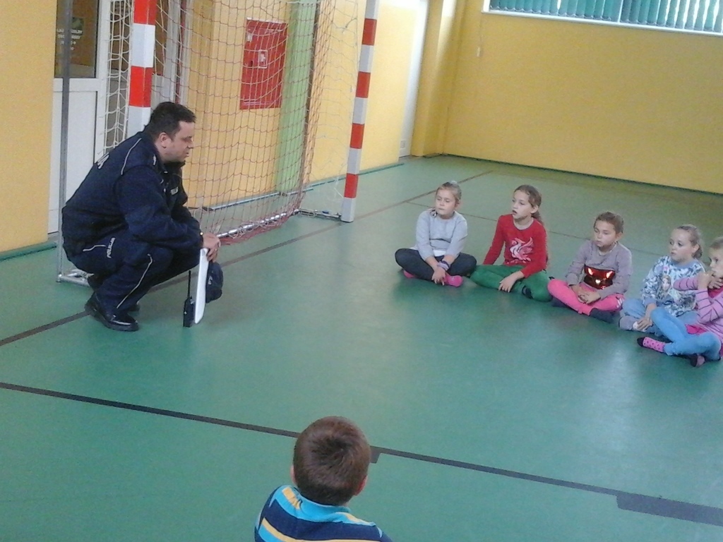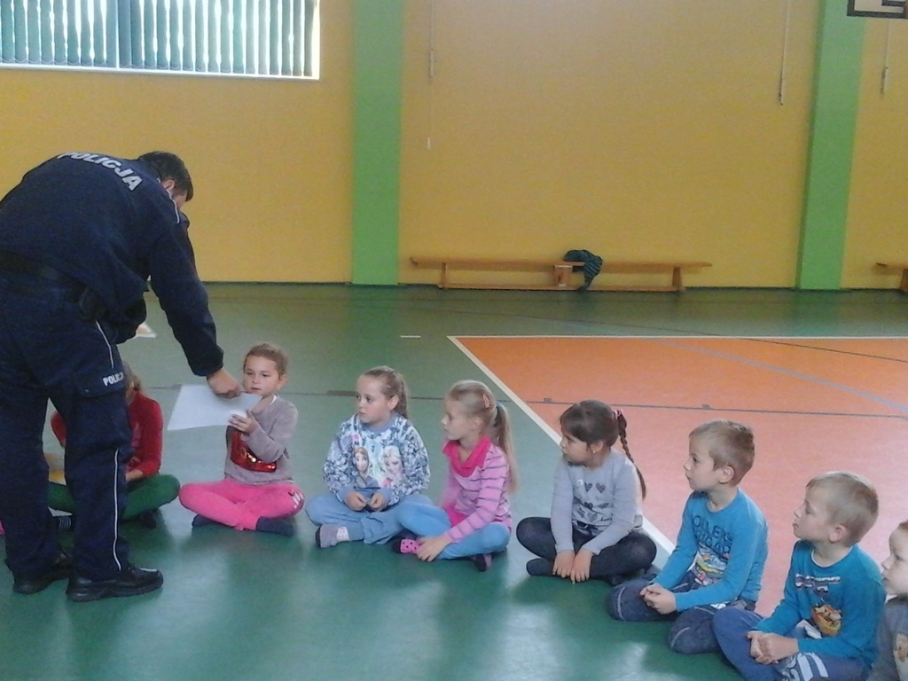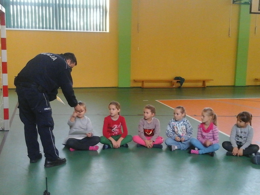 Uczniowie z klasy pierwszej wzięli udział w spotkaniu z mł. aspirantem Michałem Ciszakiem. Tematem spotkania było utrwalenie z dziećmi podstawowych zasad bezpieczeństwa obowiązującego w ruchu drogowym. Pan policjant w formie praktycznej, przypomniał najważniejsze zasady zachowania się podczas przechodzenia przez jezdnię. Dzieci czynnie uczestniczyły w spotkaniu. Dzieliły się swoimi spostrzeżeniami i doświadczeniami oraz zadawały bardzo dużo pytań.